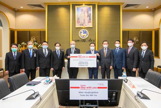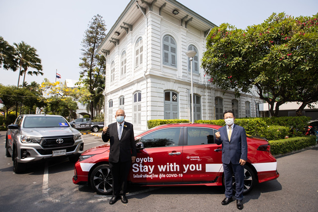 โดยการสนับสนุนในครั้งนี้ โตโยต้า ได้สนับสนุนรถยนต์โตโยต้า โคโรลล่า อัลติส จำนวน 100 คัน และ รถกระบะไฮลักซ์ รีโว่ จำนวน 150 คัน เพื่อใช้ประโยชน์ในภารกิจของเจ้าหน้าที่ที่เกี่ยวข้องระหว่างการแก้ไขสถานการณ์การแพร่ระบาดของเชื้อไวรัส COVID-19 เช่น การติดต่อประสานงาน, การค้นหาติดตามผู้ติดเชื้อ, การเฝ้าระวังสถานการณ์ รวมถึงการจัดตั้งจุดคัดกรองและจุดสกัดต่างๆ ตลอดจนสนับสนุนการปฏิบัติงานของเจ้าหน้าที่ในหน่วยงานภายใต้กระทรวงมหาดไทย และบริจาคข้าวสารจากโรงสีข้าวรัชมงคล จำนวน 77 ตัน โดยจัดส่งผ่านผู้แทนจำหน่ายโตโยต้า จังหวัดละ 1 ตัน เพื่อกระจายความช่วยเหลือไปยังเจ้าหน้าที่ที่เกี่ยวข้องกับการแก้ไขสถานการณ์ COVID-19 ในพื้นที่ทุกจังหวัดทั่วประเทศ