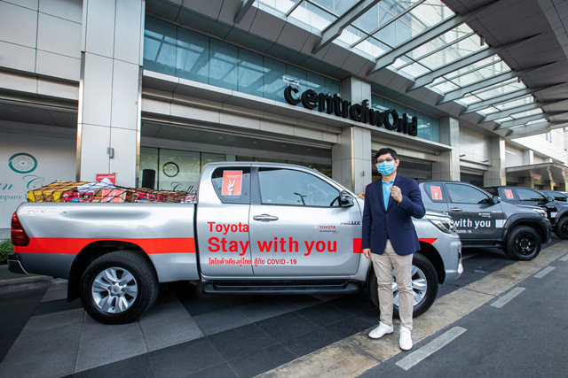 โตโยต้า ร่วมกับ เครือเซ็นทรัล และ เอพี (ไทยแลนด์) สนับสนุน ไฮลักซ์ รีโว่ เครื่องอุปโภค บริโภค และสิ่งของจำเป็น แก่บุคลากรทางการแพทย์ผ่าน 6 โรงพยาบาลในกรุงเทพฯ โดย นายสุรศักดิ์ สุทองวัน รองกรรมการผู้จัดการใหญ่ บริษัท โตโยต้า มอเตอร์ ประเทศไทย จำกัด ร่วมกับ ดร.ณัฐกิตติ์ ตั้งพูลสินธนา ผู้ช่วยกรรมการผู้จัดการใหญ่สายงานการตลาด บริษัท เซ็นทรัล พัฒนา จำกัด (มหาชน) นายณัฐ วงศ์พานิช กรรมการผู้จัดการใหญ่ บริษัท เซ็นทรัล เรสเตอรองส์ กรุ๊ป จำกัด และนายประจักษ์ ประภามณฑล ผู้ช่วยกรรมการผู้อำนวยการสายงานคอนโด 2 บริษัท เอพี (ไทยแลนด์) จำกัด (มหาชน) ร่วมทำพิธีปล่อยคาราวานเพื่อขนส่งเครื่องอุปโภค บริโภค ข้าวสาร อาหาร และสิ่งของจำเป็นช่วยเหลือโรงพยาบาลที่ได้รับผลกระทบจากสถานการณ์แพร่ระบาดเชื้อไวรัส COVID-19 ซึ่งถือเป็นการผนวกความร่วมมือของภาคีเครือข่ายทางธุรกิจ เมื่อวันที่ 6 เมษายน 2563 ณ ศูนย์การค้าเซ็นทรัล เวิลด์