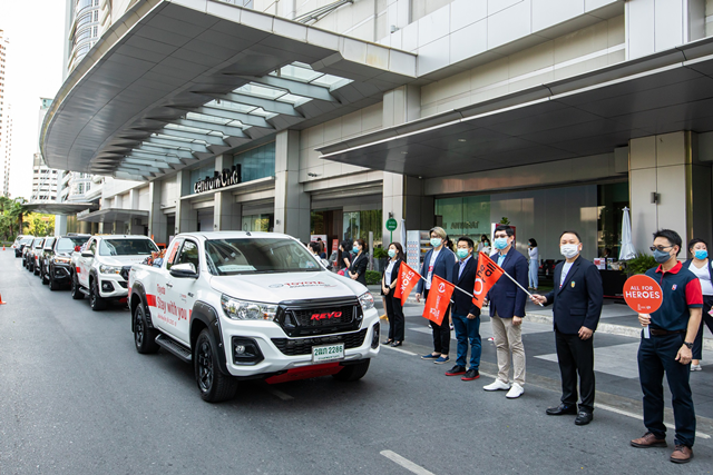 จากสถานการณ์การแพร่ระบาดเชื้อไวรัส COVID-19 บริษัท โตโยต้า มอเตอร์ ประเทศไทย จำกัด จึงได้ร่วมมือกับภาคีเครือข่ายทางธุรกิจ บริษัท เซ็นทรัล พัฒนา จำกัด (มหาชน) บริษัท เซ็นทรัล เรสเตอรองส์ กรุ๊ป จำกัด และบริษัท เอพี (ไทยแลนด์) จำกัด (มหาชน) ได้ให้ความช่วยเหลือและสนับสนุนการปฏิบัติงานของบุคลากรทางการแพทย์ผ่าน 6 โรงพยาบาล ได้แก่ โรงพยาบาลจุฬาลงกรณ์, โรงพยาบาลราชวิถี, โรงพยาบาลตำรวจ, โรงพยาบาลศิริราช, โรงพยาบาลพระมงกุฎเกล้า และโรงพยาบาลรามาธิบดี โดยทางโตโยต้าได้ให้การสนับสนุน ไฮลักซ์ รีโว่ จำนวน 12 คัน พร้อมคนขับ เพื่อใช้เป็นยานพาหนะในการขนส่งเครื่องอุปโภค บริโภค ข้าวสาร อาหาร และสิ่งของจำเป็น ที่ใช้สนับสนุนการปฏิบัติงานของบุคลากรทางการแพทย์ ระหว่างสถานการณ์การแพร่ระบาดเชื้อไวรัส COVID-19 ทั้งนี้กิจกรรมมีขึ้นตั้งแต่วันที่ 6 - 15 เมษายน 2563