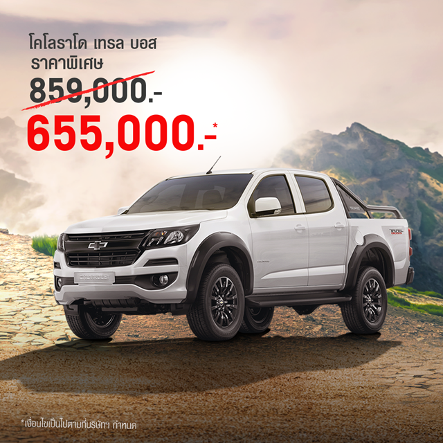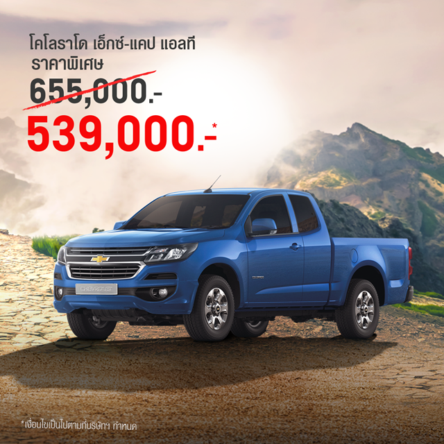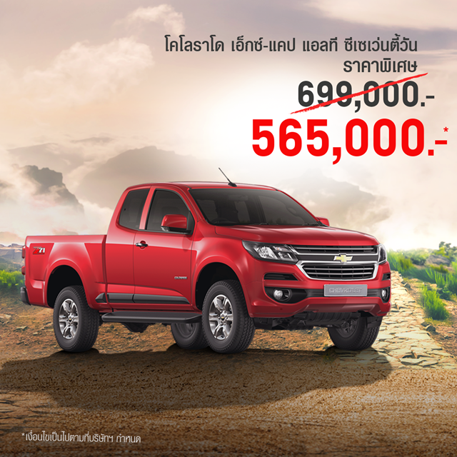 เชฟโรเลต ประเทศไทย จัดโปรโมชั่นพิเศษให้ผู้ที่อยากเป็นเจ้าของรถกระบะ 'เชฟโรเลต โคโลราโด' ด้วยส่วนลดสูงสุดกว่าสองแสนบาทพร้อมบริการหลังการขายที่ได้มาตรฐานและศูนย์ลูกค้าสัมพันธ์ที่ยังคงดูแลลูกค้าอย่างเต็มรูปแบบเช่นเดิม ในขณะที่รถอเนกประสงค์เชฟโรเลต แคปติวา ใหม่ และเทรลเบลเซอร์ ได้รับความสนใจอย่างล้นหลามจนจำหน่ายหมดในเวลาอันรวดเร็ว ด้านเชฟโรเลต โคโลราโด ก็ทำยอดขายได้ดีไม่แพ้กันจนมีรถอยู่ในสต๊อกอีกจำนวนไม่มาก ลูกค้าที่สนใจสามารถติดต่อจองด่วนที่ตัวแทนจำหน่ายเชฟโรเลตทั่วประเทศ เพราะโอกาสดีแบบนี้มีจำนวนจำกัด สำหรับลูกค้าที่ทำการจองเชฟโรเลต โคโลราโด ตั้งแต่วันนี้-31 กรกฎาคม 2563 หรือจนกว่าสินค้าจะหมด รับโปรโมชั่นราคาพิเศษ ดังนี้