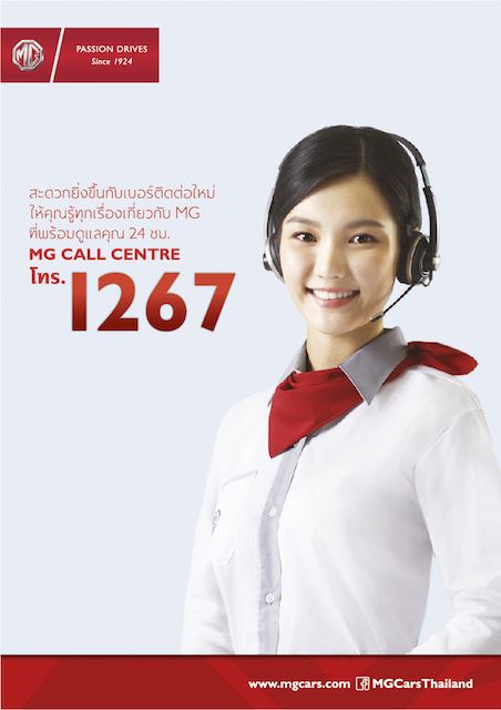 สอบถามข้อมูลเพิ่มเติมสามารถติดต่อได้ที่ศูนย์ลูกค้าสัมพันธ์ MG CALL CENTRE โทร. 1267 และสามารถติดตามข้อมูลข่าวสารเพิ่มเติมของเอ็มจีได้ที่ Website: www.mgcars.com