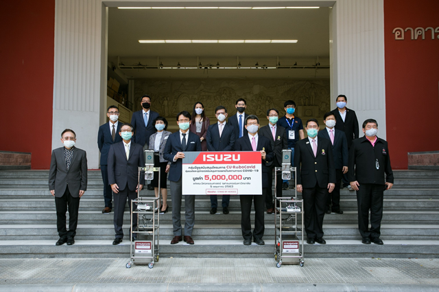 กลุ่มอีซูซุมอบเงิน 5 ล้านบาท ให้แก่คณะวิศวกรรมศาสตร์ จุฬาลงกรณ์มหาวิทยาลัย สำหรับโครงการ 'CU-RoboCOVID' ซึ่งเป็นการพัฒนาหุ่นยนต์และอุปกรณ์สนับสนุนการแพทย์ในสถานการณ์ COVID-19 เพื่อส่งมอบให้แก่โรงพยาบาลทั่วประเทศ เป็นการเพิ่มประสิทธิภาพการปฏิบัติงานของบุคลากรทางการแพทย์และลดความเสี่ยงจากการติดเชื้อ โดยหุ่นยนต์ในชุดนี้ประกอบด้วย