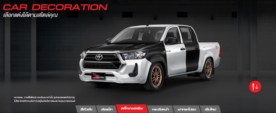 นอกจากนี้ยังสามารถให้ลูกค้าได้เลือกการตกตแ่งจากรุ่น Z-edition ได้จากเว็บไซต์โตโยต้า เพื่อเป็นแนวทางในการเเลือกตัดสินใจ ตกแต่งรถคันโปรดของคุณให้สมบูรณ์แบบยิ่งขึ้น
