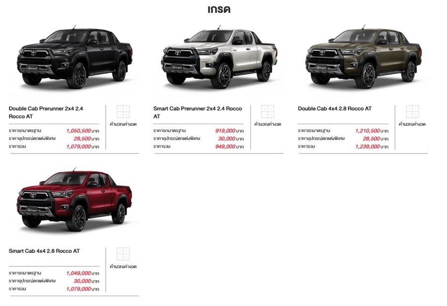 - New Toyota Hilux Revo Rocco มี 4 รุ่น ราคา 949,000 - 1,239,000 บาท