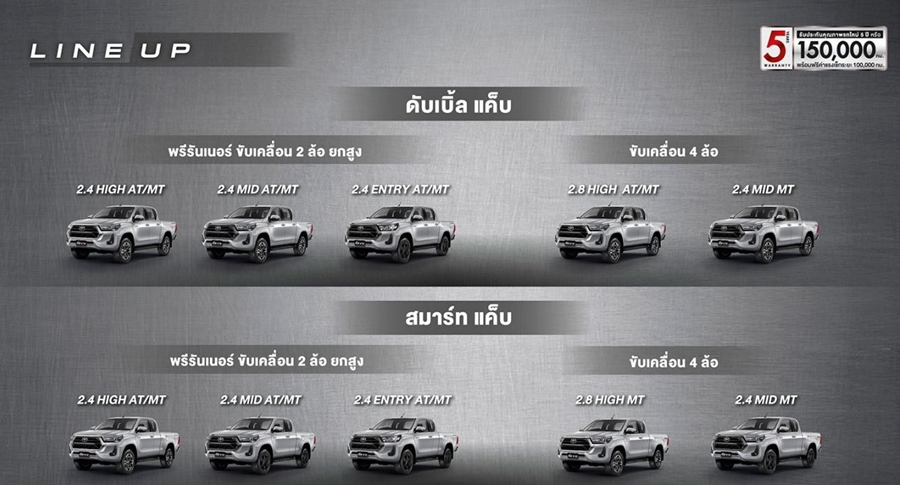 - New Toyota Hilux Revo รุ่นมาตรฐาน มี 7 รุ่น ราคา 544,000 - 704,000 บาท