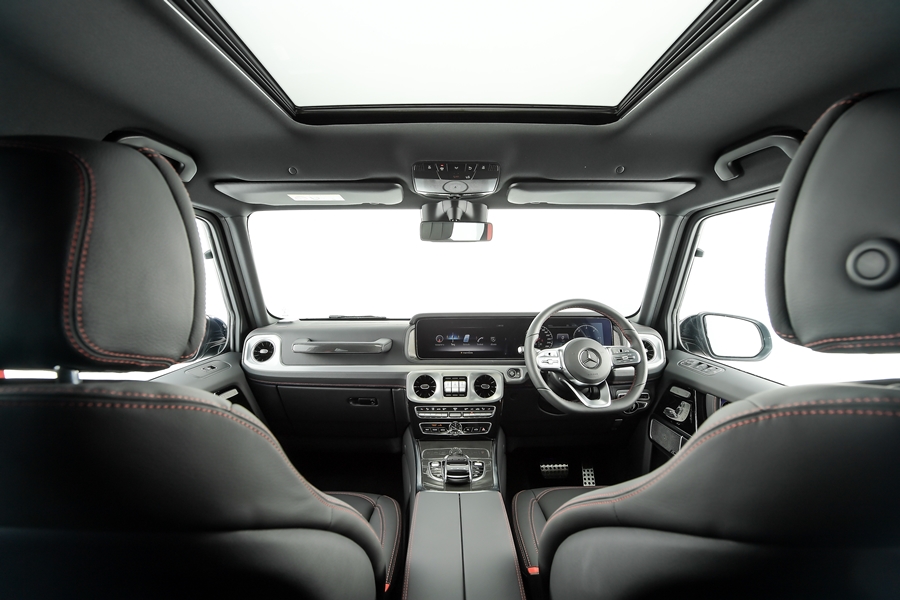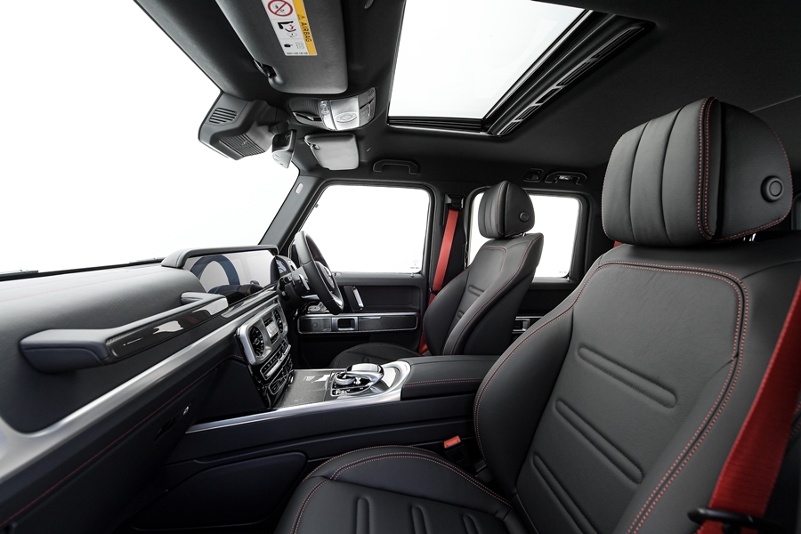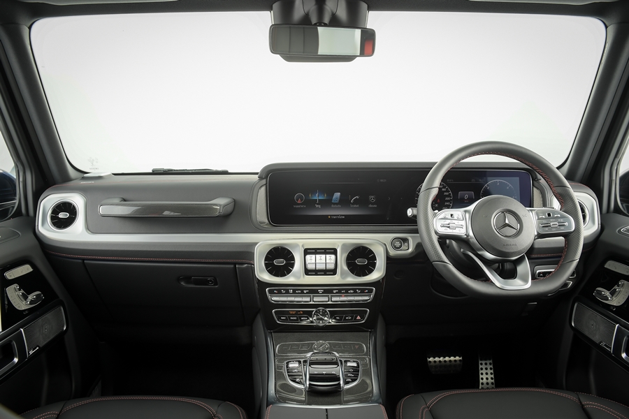 G-Class ด้วยการตกแต่งห้องโดยสารตามแนวคิดวิถีแห่งธรรมชาติ ในพื้นที่ห้องโดยสารที่โอ่โถงกว้างขวาง โดยได้รับการตกแต่งด้วยความหรูหราและล้ำสมัย ด้วยช่องปรับอากาศดีไซน์ใหม่สีเงินขัดเงา สอดรับกับแผงหน้าปัดอลูมิเนียม ผสานกลิ่นอายความแข็งแกร่งอันเป็นเอกลักษณ์ได้อย่างไร้ที่ติ พร้อมสุดยอดเทคโนโลยีที่รวมทุกสิ่งอำนวยความสะดวกให้คุณตลอดการเดินทางด้วยจอแสดงผลความละเอียดสูงแบบ Digital Widescreen Cockpit ขนาด 12.3 นิ้ว ทำงานสอดประสานกับ Touchpad with Controller ที่ใช้งานง่ายราวกับสัมผัสบนสมาร์ทโฟนที่คุณคุ้นเคย พร้อมให้คุณไปสู่ทุกจุดหมายได้เร็วขึ้นด้วยระบบนำทางแบบ COMAND Online: 3D Map ที่จะรายงานและวิเคราะห์เส้นทางที่ปลอดภัยและรวดเร็วที่สุดในรูปแบบ 3 มิติ