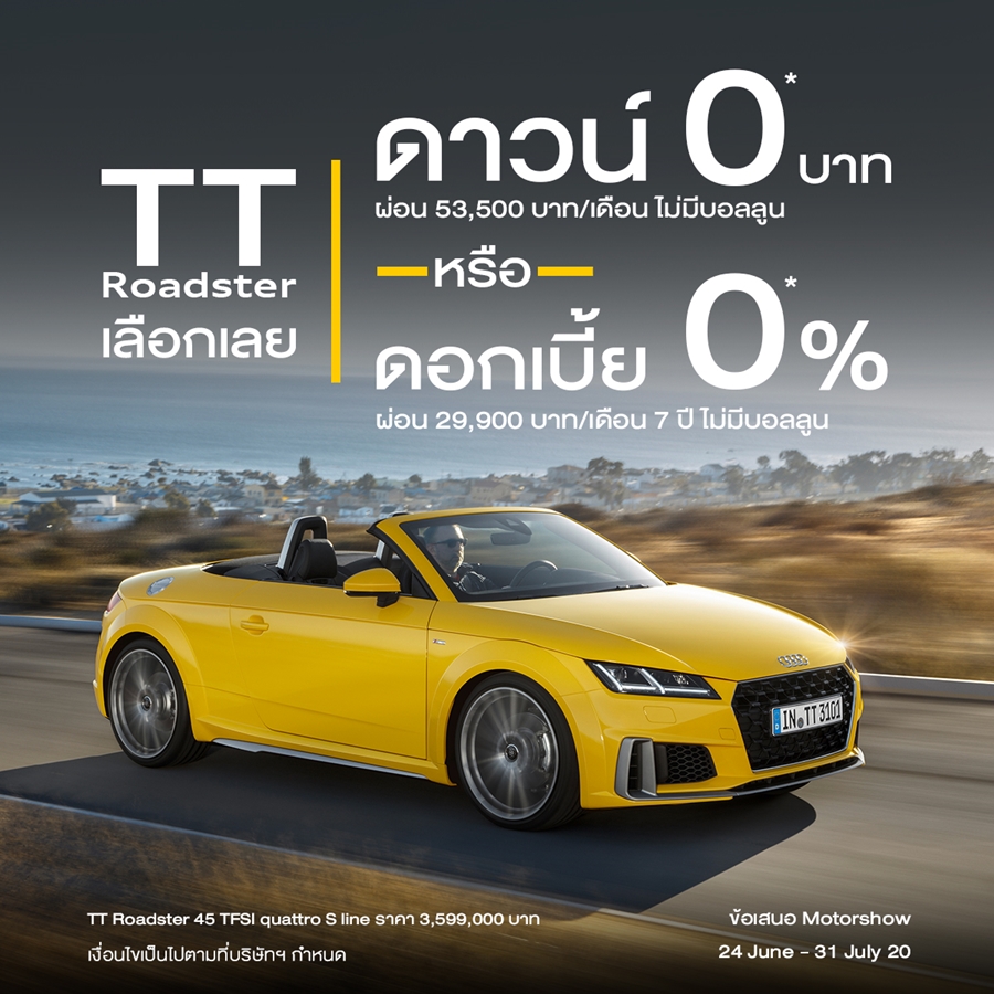 - Audi TT Roadster ผ่อนต่อเดือนเพียง 29,990 บาท นาน 7 ปี *** ไม่มีบอลลูน