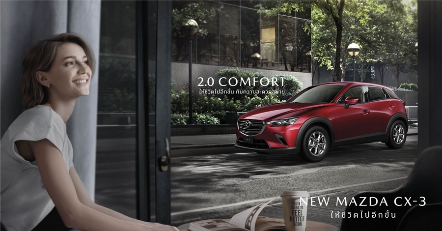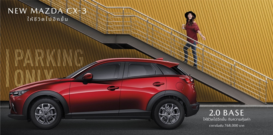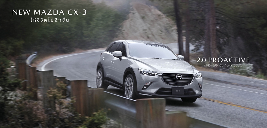NEW MAZDA CX-3 มากับเครื่องยนต์สกายแอคทีฟเบนซิน 2.0 ลิตร ทั้งแรงและประหยัด อัดแน่นด้วยเทคโนโลยีความปลอดภัยเต็มคัน ให้คุณก้าวสู่อีกระดับของการใช้ชีวิตในแบบที่เป็นคุณ มาพร้อมคอนเซ็ปต์ใหม่ Leap Forward ให้ชีวิตไปอีกขั้น วางกลยุทธ์เด็ดเจาะฐานลูกค้ากลุ่มใหญ่ B-Car Upper และลูกค้ากลุ่ม B-SUV ที่ต้องการรถประเภท SUV เป็นคันแรกในบ้าน ด้วยราคาเริ่มต้นเพียง 700,000 กว่าบาท พร้อมดอกเบี้ย 0% ฟรีประกันภัยชั้นหนึ่ง Mazda Premium Insurance 1 ปี ขยายการรับประกันคุณภาพเป็น 5 ปี หรือ 150,000 กิโลเมตร และฟรีค่าแรงเช็คระยะ 5 ปี หรือ 100,000 กิโลเมตร