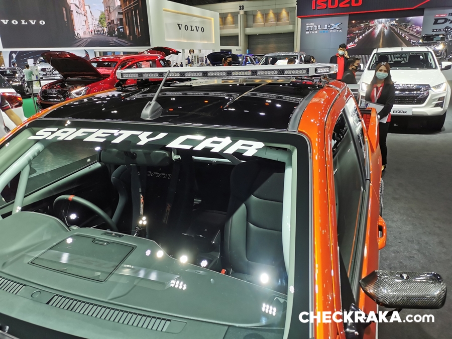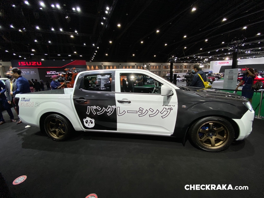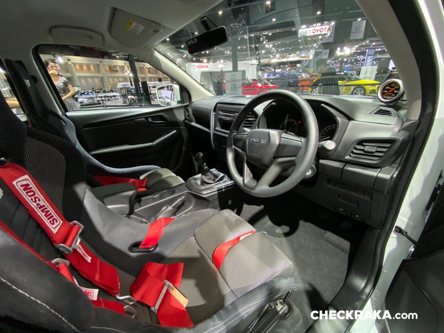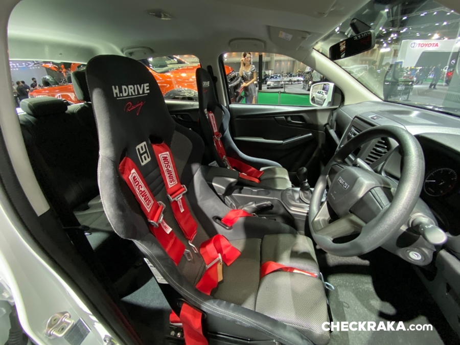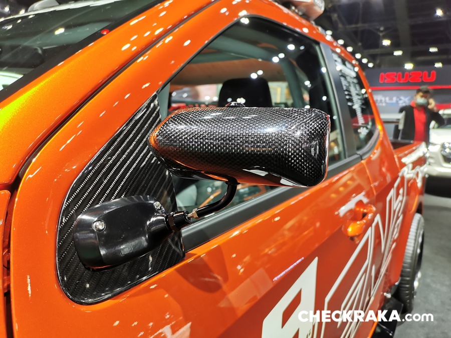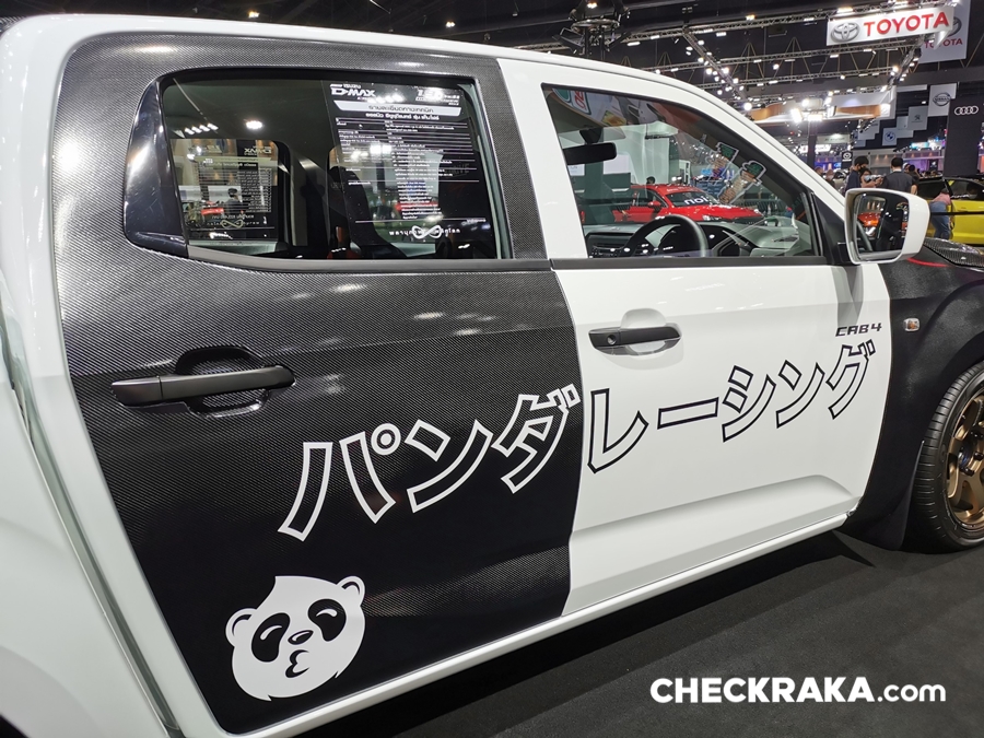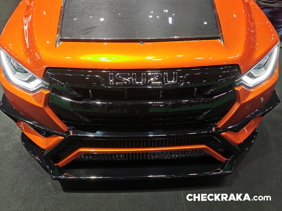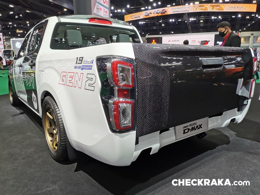 รถยนต์อีซูซุคันนี้บอดี้พาร์ทภายนอกทั้งคันให้มีความสปอร์ต โฉบเฉี่ยว พร้อมติดตั้งฝากระโปรงหน้าฝาปิดกระบะท้าย กระจกมองข้างทรงสปอร์ต สปอยเลอร์หลังคาด้วย Akana Carbon Composite เท่อย่างลงตัวด้วยล้ออัลลอย PP Super Wheels ล้อหน้า 9.5 นิ้ว ล้อหลัง 10.5 นิ้ว พร้อมยาง Toyo Tire T-1S ยางหน้า 245/45R18 ยางหลัง 275/40R18 ดิสก์เบรก 4 ล้อจาก Run Stop แบบ 6 พ็อต ขนาด 355 มม. ชุดโหลดช่วงล่างจาก Hot bits เสริมความแรงด้วยกล่อง ECU Shop รุ่น Ultra Boost ให้กำลังสูงสุด 350 แรงม้า แรงบิดสูงสุด 600 นิวตัน-เมตร ตอกย้ำความเป็นผู้นำด้านสมรรถนะและความแรง ถ่ายทอดกำลังเครื่องยนต์ได้เต็มประสิทธิภาพด้วยชุดคลัชท์ BRC และท่อไอเสีย Nitto ตลอดจนอุปกรณ์เพื่อความปลอดภัยครบครัน เช่น Roll Cage เบาะรถแข่ง Sparco เข็มขัดนิรภัย HC Group พวงมาลัย Sparco เป็นต้น