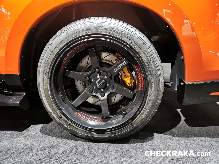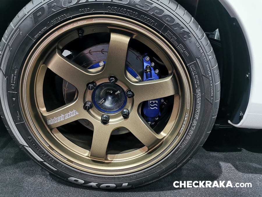 ชุดโหลดช่วงล่างปรับระดับได้ Aztex Force ล้ออัลลอย Rays Volk Racing TE37SB 8x18 นิ้ว พร้อมยาง Toyo Tires Proxes T1-S Sport ขนาด 245/45 R18 เบรกได้มั่นใจสุดด้วยชุดดิสก์เบรกหน้า-หลังแบบ 6 Pot และ 4 Pot จาก Endless ปรับจูนความแรงเครื่องยนต์โดยกล่อง Alpha Tech รุ่น Super Storm ให้กำลังสูงสุด 350 แรงม้า แรงบิดสูงสุด 600 นิวตัน-เมตร คลัทช์ BRC Full Plate ชุดอินเตอร์คูลเลอร์และท่อไอเสียโดย BRD Racing Shop และสติ๊กเกอร์ตกแต่งพิเศษ พร้อมตกแต่งห้องเครื่องยนต์ให้สวยงามสไตล์สปอร์ตโดย MRX เบาะคู่หน้าแบบบัคเก็ตซีท H-Drive พร้อมชุดเข็มขัดนิรภัยแบบ 6 จุด Simpson รวมมูลค่าชุดแต่ง กว่า 600,000 บาท
