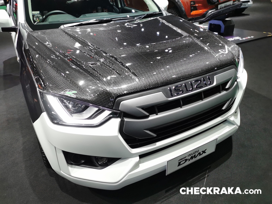 ออลนิว อีซูซุดีแมคซ์ แค็บโฟร์ เอส รถแต่งซิ่งสุดจี๊ดสีขาวโดยความร่วมมือจากสำนักแต่งชั้นนำ ด้วยชุดแต่งรอบคันสะท้อนบุคลิกที่โฉบเฉี่ยว เต็มอารมณ์สปอร์ต ฝากระโปรงหน้า ฝาปิดกระบะท้ายและสปอยเลอร์ท้ายสีเทาดำสุดเข้มแบบ Carbon Composite จาก Monza ให้น้ำหนักเบา ชุดไฟหน้าแบบ Bi-LED พร้อม Daytime Running Light