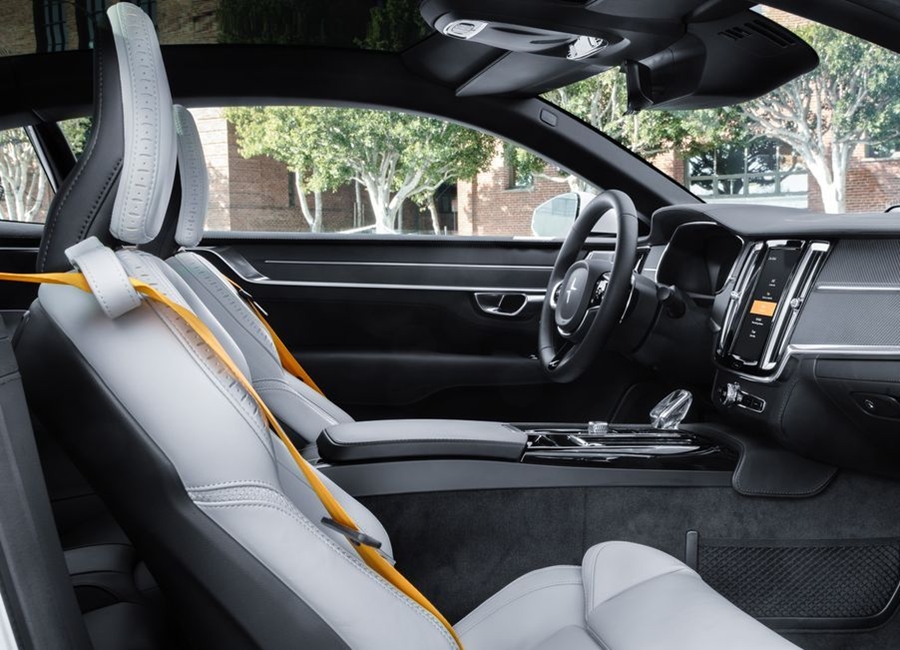 สำหรับภายในนั้นแทบจะยกชุดมาจาก Volvo S90 sedan หรือ V90 station wagon เพียงเปลี่ยนแค่โลโก้บนพวงมาลัยเท่านั้น ส่วนเบาะหลังเล็ก ๆ ในเป็นสไตล์รถคูเป้ 2 ประตูนั่นเอง ส่วนระบบความบันเทิง Infotainment จอสัมผัสรองรับ Apple CarPlay และ Android ขนาด 12.3 นิ้ว จากวอลโว่นั่นเอง