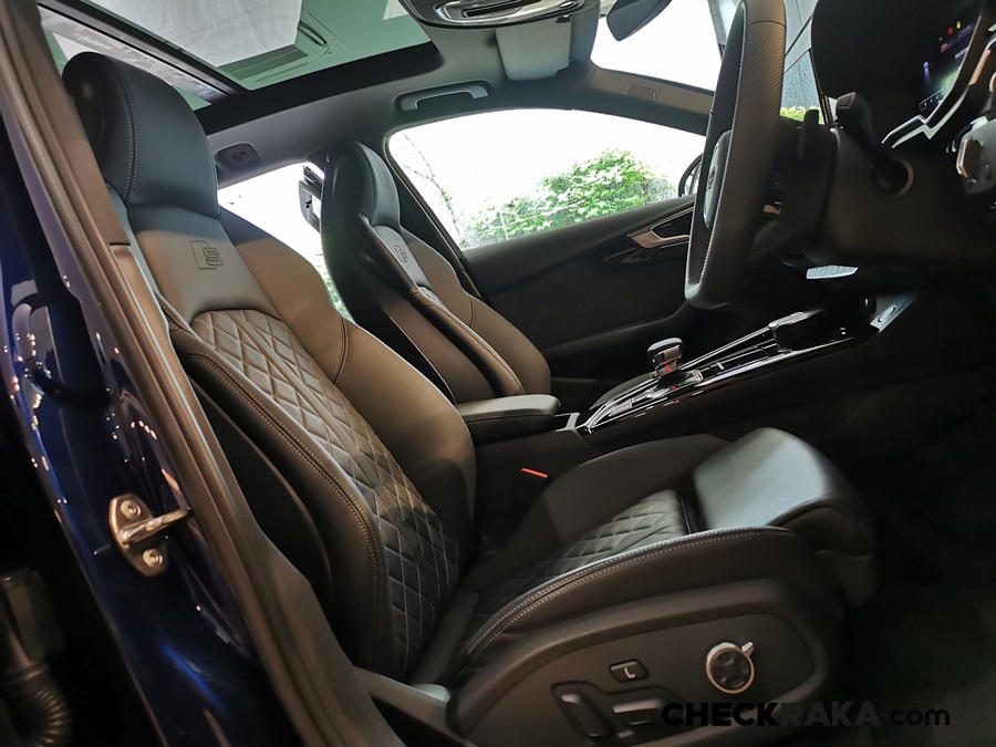 ภายในห้องโดยสารอัพเกรดดีไซน์และวัสดุให้บรรยากาศดูพรีเมียมขึ้น แผงหน้าปัดติดตั้งให้อยู่ในองศาที่อำนวยความสะดวกให้กับผู้ขับขี่ พร้อมการเชื่อมต่อกับโทรศัพท์มือถือด้วย Audi smartphone interface แสดงผลผ่านระบบ MMI Radio plus หน้าจอแบบสัมผัสขนาด 8.8 นิ้ว จอแสดงผลข้อมูลการขับขี่แบบ Virtual cockpit plus ขนาด 12.3 นิ้ว โดยผู้ขับขี่สามารถเลือกให้แสดงมุมมอง 3 รูปแบบ ชุดเครื่องเสียง Bang & Olufsen พร้อมระบบเสียง 3 มิติให้เสียงคมชัดสมจริง เบาะนั่งปรับไฟฟ้าแบบ S Sports วัสดุหุ้มหนัง Fine Nappa ตกแต่งแบบ Diamond Cut ออกแบบให้รองรับกับสรีระ ให้ความสะดวกสบายและประสิทธิภาพสูงสุดของการขับขี่ พื้นที่เก็บสัมภาระจุใจกว้างขวางพร้อมตอบโจทย์ทุกความต้องการของครอบครัวคนรุ่นใหม่