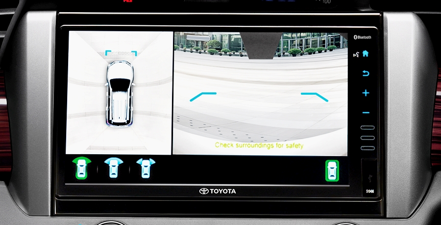 - ใหม่ กล้องมองภาพรอบทิศทาง Panoramic View Monitor เทคโนโลยีกล้องมองภาพรอบทิศทาง 360 องศา ช่วยตรวจจับคนหรือของใกล้ตัว เพิ่มความปลอดภัยและความมั่นใจไปอีกขั้นในทุกเส้นทาง (เฉพาะรุ่น 2.8 Crysta Premium)