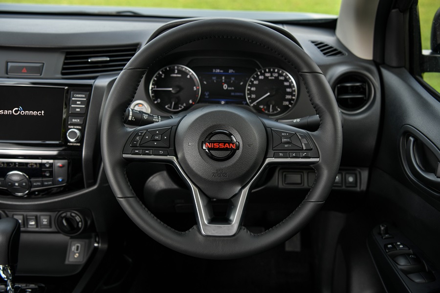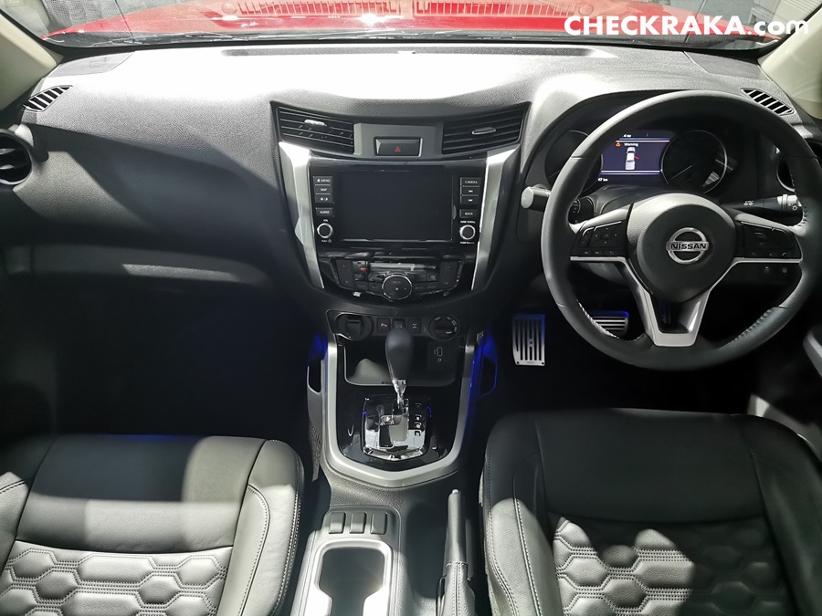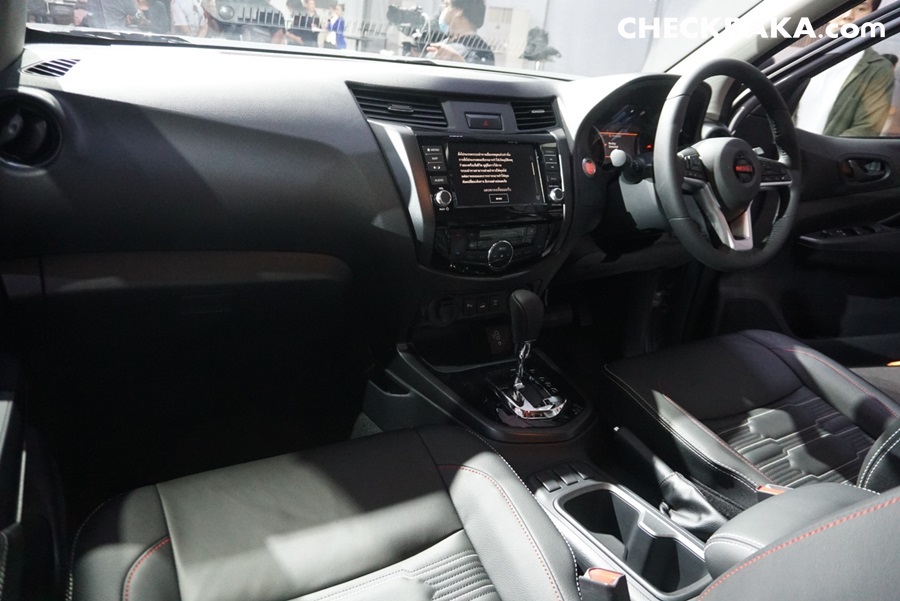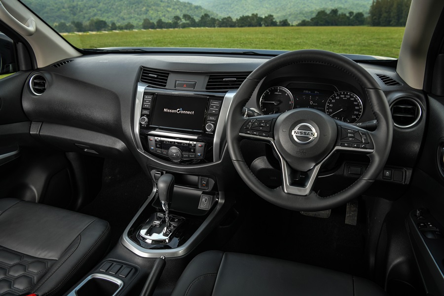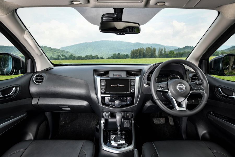 นิสสัน นาวารา ใหม่ ออกแบบภายในอย่างมีเอกลักษณ์ และสะดวกสบายอย่างมีสไตล์ภายในห้องโดยสารเงียบสงบด้วย Noise-reducing acoustic glass ลดเสียงรบกวนจากภายนอกรวมถึงกระจกตอนหลังกรองแสงสีชาเพิ่มความหรูหราด้วยการตกแต่งภายในด้วยหนังแท้รอบห้องโดยสารโทนสีดำ เบาะนั่งปรับไฟฟ้า (Power Seat) สำหรับคนขับเบาะนั่งคู่หน้าแบบ Zero Gravity ปรับตำแหน่งได้อิสระช่วยลดอาการเมื่อยล้าขณะขับขี่ทางไกล ตลอดจนที่นั่งด้านหลังเพิ่มความสบายด้วยดีไซน์ใหม่นุ่มสบาย (Comfort rear seating cushions) มีที่พักแขนและที่วางแก้วน้ำ 2 ตำแหน่ง ตอบโจทย์ด้านอรรถประโยชน์ของการใช้งานให้ทั้งผู้ขับขี่และผู้โดยสาร