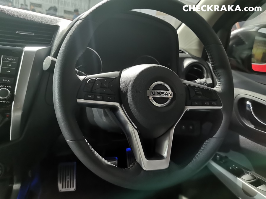 นอกจากนี้ นาวารา ใหม่ ยังมาพร้อมชุดแต่งดีไซน์สุดเข้มเพื่อเสริมความเท่ทั้งภายนอกและภายใน อาทิ ล้ออัลลอย ขนาด18 นิ้ว, กันชนหน้าแบบออฟโรด,กระจังหน้าแบบตัววี สีดำเงารวมถึงฝาครอบกระบะท้ายลายคาร์บอน ฯลฯ ' *สำหรับรายละเอียดในแต่ละรุ่นย่อย กรุณาตรวจสอบข้อมูลจากแคตตาลอกในเรื่องอุปกรณ์มาตรฐานและรายละเอียดทางเทคนิค (Specification)' **เฉพาะสมาร์ทโฟนรุ่นที่รองรับการใช้งาน