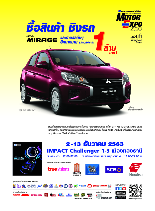 เรียกว่าเป็นงานไฮไลท์ส่งท้ายปี และเป็นประจำทุกปีที่เราจะได้เข้าไปยลโฉมยนตกรรมใหม่ๆ ของ ค่ายรถทั้งรถยนต์และรถจักรยานยนต์ต่างๆ ที่มีจำหน่ายในเมืองไทย กับ งาน "มหกรรมยานยนต์ ครั้งที่ 37" Motor Expo 2020 และปีนี้ บริษัท สื่อสากล จำกัด ผู้จัดงาน Motor Expo 2020 ก็พร้อมที่จะสนองความต้องการของคนที่อยากได้รถใหม่ โปรโมชั่นสุดคุ้ม แถมมีสิทธิ์ลุ้นรางวัลใหญ่จากผู้จัด รถ 3 คัน บิกไบค์ 1 คัน อีกด้วย