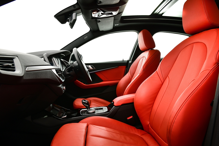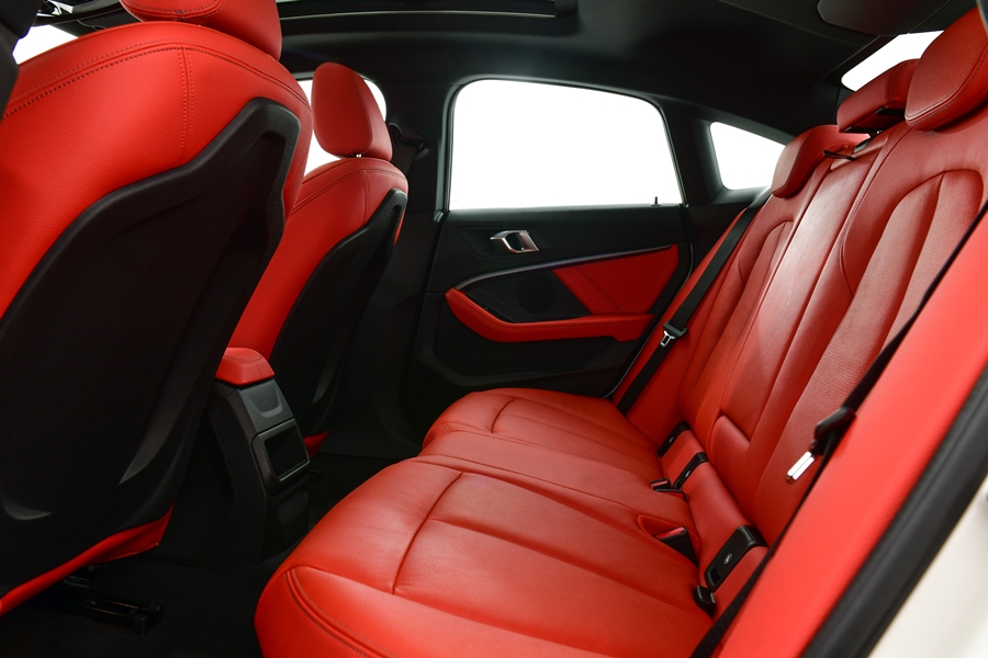 การออกแบบที่เน้นผู้ขับยังถูกเสริมด้วยแถบตกแต่งที่พาดผ่านตรงเข้าสู่ที่นั่งคนขับ และการเล่นกับรายละเอียดบนพื้นผิววัสดุแบบต่างๆ ทั้งในส่วนแผงหน้าปัดและบริเวณหลังพวงมาลัย โดยแถบสีบริเวณแผงหน้าปัดและกรอบประตูมาในลาย Illuminated Boston ด้านชุดแต่ง M Sport มาพร้อมพวงมาลัยหนัง M และเบาะที่นั่งผู้ขับขี่และผู้โดยสารตอนหน้าดีไซน์สปอร์ตหุ้มหนังแท้ และเพดานหลังคาภายในห้องโดยสารในสีดำ Anthracite ที่ส่งให้บีเอ็มดับเบิลยู 220i Gran Coupe M Sport ดูสปอร์ตโฉบเฉี่ยวยิ่งกว่าเดิม
