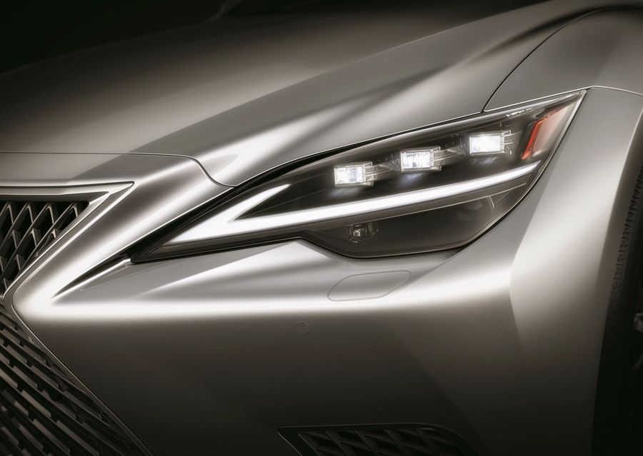 ไฟหน้า LED แบบสามดวง พร้อมไฟ Daytime Running Light รูปตัว L และไฟเปิดต้อนรับผู้โดยสารขณะเข้า - ออก ได้รับแรงบันดาลใจจากไฟหน้าของเลกซัส LC ต้นแบบสายพันธุ์สปอร์ตของเลกซัส เอกลักษณ์ที่โดดเด่นเฉพาะตัว ใส่ใจในทุกรายละเอียดตามแบบฉบับเลกซัส