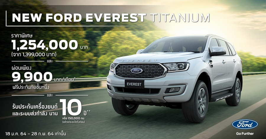 ไทเทเนี่ยม ที่โชว์รูมฟอร์ดทั่วประเทศ ตั้งแต่วันที่ 18 มกราคม 2564 ถึง 28 กุมภาพันธ์ 2564 และจัดไฟแนนซ์ผ่านฟอร์ด ลีสซิ่ง โดยธนาคารทิสโก้ จำกัด (มหาชน) เท่านั้น