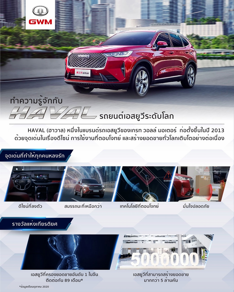 ส่วนรุ่นรถ SUV HAVAL BIG DOG ก็คาดว่าจะทยอยตามมาเร็ว ๆ นี้เช่นกัน และสำหรับสาวกรถกระบะก็ลุ้นกันอีกว่าทาง GWB จะนำ POER ยังคงมีแนวโน้มเป็นได้ว่าจะตามมาช่วงปลายปีนี้หรือต้นปีหน้า