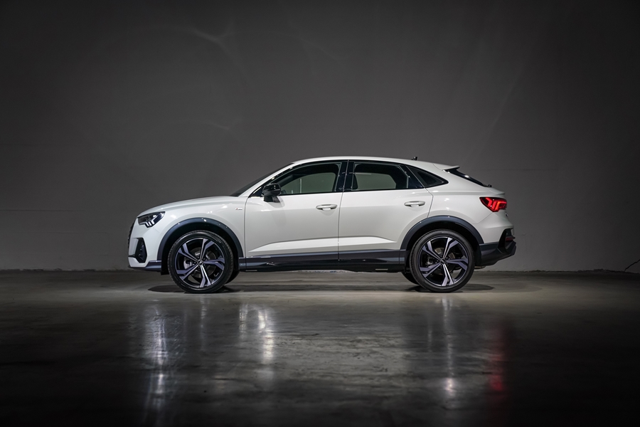 โดยในรุ่น Sportback ดีไซน์ลุคสปอร์ต สุดเท่ห์พร้อมสะกดทุกสายตาด้วยแนวหลังคาลาดเอียงจรดท้าย อันเป็นเอกลักษณ์ ปราดเปรียว ภายในกว้างขวาง ทำให้สามารถจัดพื้นที่ใช้สอยอย่างลงตัว เหมาะทุกการเดินทาง เพื่อเพิ่มความสปอร์ตมากขึ้น อาวดี้ใจดี ใส่ล้อขนาด 20 นิ้ว ซึ่งใหญ่ที่สุดในรุ่นนี้ให้ โดดเด่นและแตกต่างด้วยลาย 5 Twin spoke rotor design ซึ่งได้รับแรงบันดาลใจจากใบพัดเครื่องบิน ในรุ่น The New Audi Q3 Sportback 40 TFSI quattro S line Black Edition มีให้เลือก 6 สี คือ Glacier white, Mythos black, Daytona grey, Pulse orange, Turbo blue และสีใหม่เฉพาะรุ่นนี้ คือ Dew silver โดยราคาจำหน่ายอย่างเป็นทางการเพียง 2,990,000 บาท