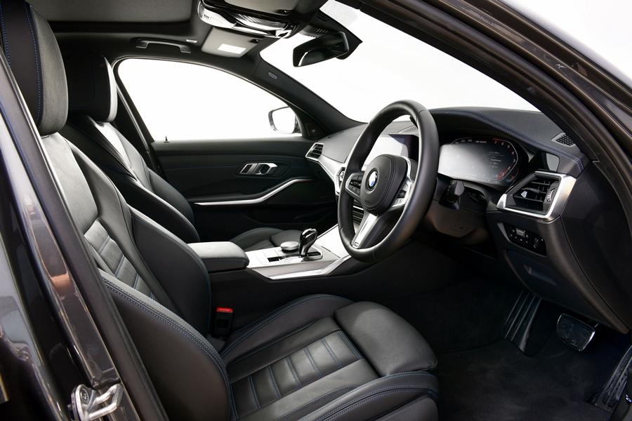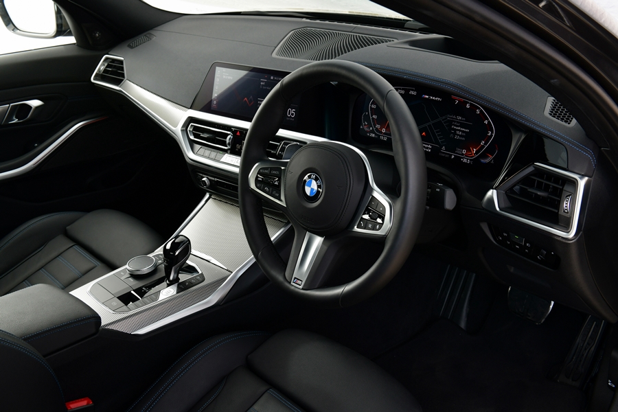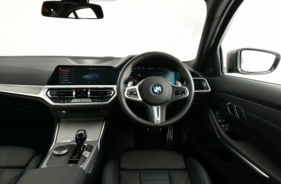 ส่วนห้องโดยสารมาพร้อมกับเบาะนั่งตอนหน้าแบบสปอร์ตบุลาย M คอนโซลด้านบนบุด้วยหนัง Sensatec เพดานหลังคาภายในสี Anthracite และพวงมาลัยหุ้มหนังดีไซน์ M Sport พร้อมแป้นเปลี่ยนเกียร์ ภายในตกแต่งด้วยอะลูมิเนียมลาย Tetragon เติมเต็มบรรยากาศเหนือระดับอันเป็นเอกลักษณ์ของบีเอ็มดับเบิลยู นอกจากนี้ ยังโดดเด่นด้วยดีไซน์เฉพาะตัวที่บ่งบอกชื่อรุ่น M340i xDrive บริเวณขอบประตูหน้า พร้อมปรากฎโลโก้ M340i บนแผงหน้าปัดดิจิทัล