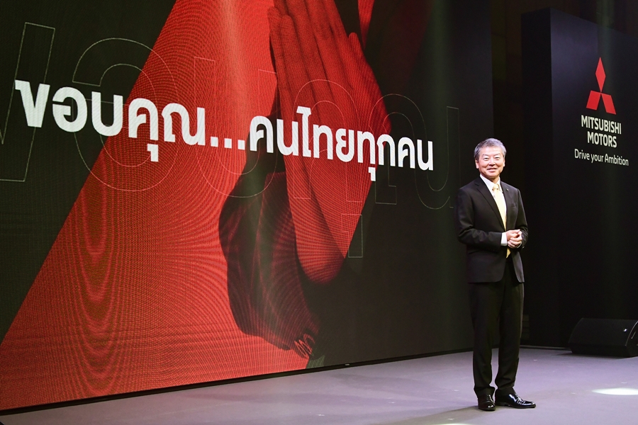 นอกจากนี้มิตซูบิชิ มอเตอร์ส ประเทศไทย ยังเป็นผู้ผลิตและส่งออกรถยนต์ที่ผลิตโดยฝีมือคนไทยเป็นรายแรก ตั้งแต่ปี พ.ศ. 2531 จวบจนปัจจุบัน เรามียอดการส่งออกสะสมครบ 4.4 ล้านคัน และส่งไปจำหน่ายทั่วโลกกว่า 120 ประเทศ ล่าสุดเรามีความยินดีที่จะประกาศว่า เราได้บันทึกอีกก้าวสำคัญด้วยการผลิตรถยนต์ มิตซูบิชิ ครบ 6 ล้านคันในประเทศไทย ซึ่งความสำเร็จทั้งหมดนี้ เกิดขึ้นได้จากการสนับสนุนของลูกค้า ซัพพลายเออร์ เพื่อนสื่อมวลชน และรัฐบาลไทย ผมขอใช้โอกาสนี้กล่าวขอบคุณสำหรับการสนับสนุนที่ทำให้เรา ประสบความสำเร็จเป็นอย่างดี"