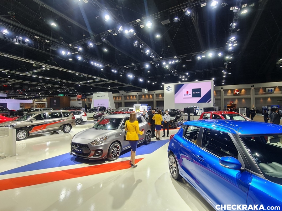 งานบางกอก อินเตอร์เนชั่นแล มอเตอร์โชว์ ครั้งที่ 42 ถูกจัดขึ้นภายใต้แนวคิด วิถีชีวิตใหม่ ใจเป็นสุข หรือ Shaping the Next Chapter ซึ่งจากวิกฤตการณ์โรคระบาดที่เกิดขึ้น ส่งผลให้เกิดการเปลี่ยนแปลงในวิถีแห่งการดำเนินชีวิต ตลอดไปจนถึงการพัฒนานวัตกรรม และเทคโนโลยีใหม่ ๆ เพื่อให้ได้เรียนรู้ที่จะอยู่อย่างปลอดภัย และใช้ชีวิตอย่างเป็นสุข ซึ่งเป็นแนวคิดที่สอดคล้องกับการดำเนินธุรกิจของซูซูกิในช่วงที่ผ่านมา ถึงแม้สถานการณ์ตลาดอุตสาหกรรมยานยนต์โดยรวมจะมีแนวโน้มที่ยากลำบากก็ตาม ยอดขายรถยนต์ในปี 2563 ซูซูกิมีอัตราการเติบโตสูงกว่าตลาดรวม 7% ที่ตัวเลขยอดขายจำนวน 25,528 คัน ด้วยกลยุทธ์สำคัญคือ การนำเสนอสินค้าที่เหมาะสมกับกลุ่มลูกค้าให้สามารถเข้าถึงและเป็นเจ้าของได้โดยง่าย ช่วยยกระดับคุณภาพชีวิตให้ปลอดภัยได้อย่างมีความสุข แสดงให้เห็นถึงความพยายามในการนำเสนอสินค้าและบริการที่ตอบรับต่อการดำเนินชีวิตในวิถีใหม่ของลูกค้า โดยจากการเข้าร่วมงาน Bangkok International Motor Show 2021 ด้วยสถานการณ์หลายอย่างเริ่มมีทิศทางที่ดีขึ้น รวมถึงบรรยากาศที่มีส่วนช่วยกระตุ้นให้เกิดการตัดสินใจซื้อรถในช่วงนี้ ซูซูกิคาดการณ์ว่าจะสามารถสร้างยอดจองภายในงานได้ถึง 2,500 คัน เพื่อบรรลุเป้าหมายยอดขายรวมของซูซูกิในปีนี้ที่ 30,000 คัน