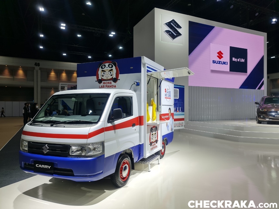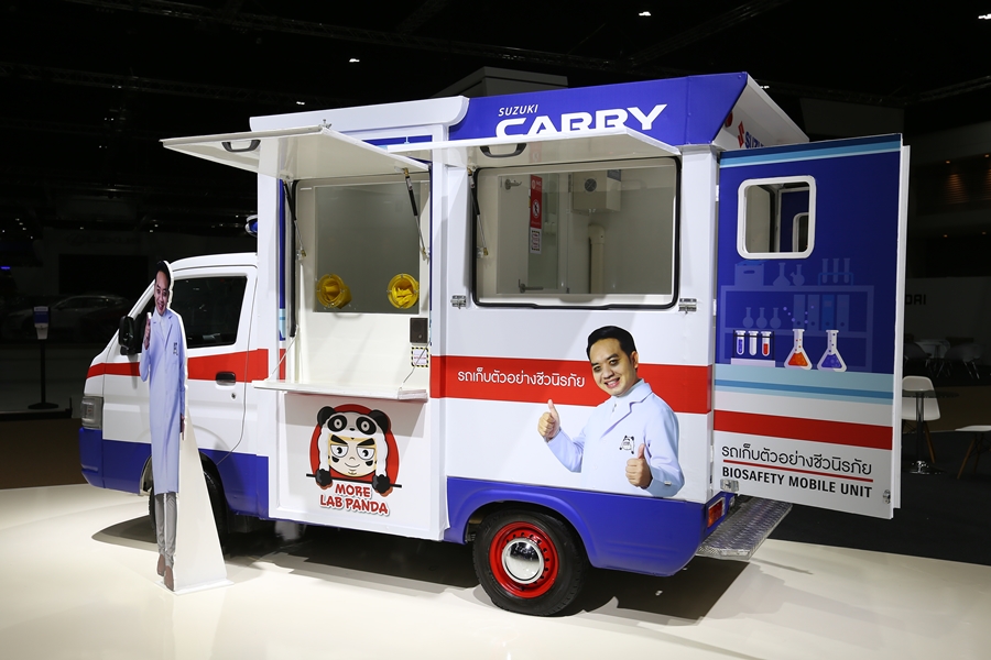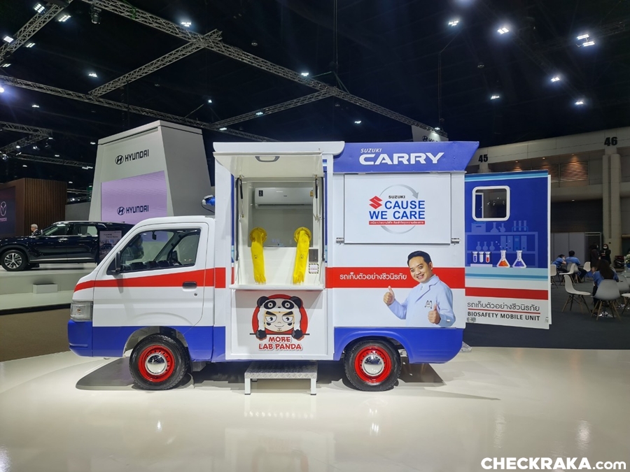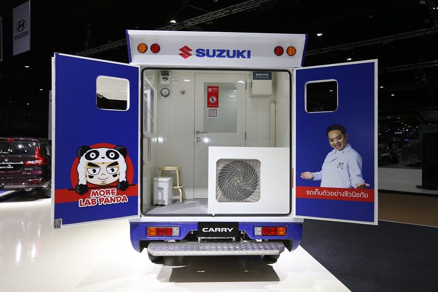 ในโซน Customized ทางซูซูกิยังคงนำรถหลากหลายรุ่นมาร่วมจัดแสดงภายในงาน เพื่อเป็นแนวทางสำหรับลูกค้าที่ชื่นชอบการตกแต่งรถที่ไม่เหมือนใคร ในครั้งนี้ซูซูกิภูมิใจเสนอ การนำ SUZUKI CARRY รถกระบะบรรทุกอเนกประสงค์มาตกแต่งให้เป็นไปได้มากกว่า Food Truck ด้วยการดัดแปลงให้เป็นรถเก็บตัวอย่างชีวนิรภัยเพื่อนำไปใช้ประโยชน์ทางการแพทย์ สำหรับการตรวจหาเชื้อโควิด-19 ในเชิงรุกแบบเคลื่อนที่