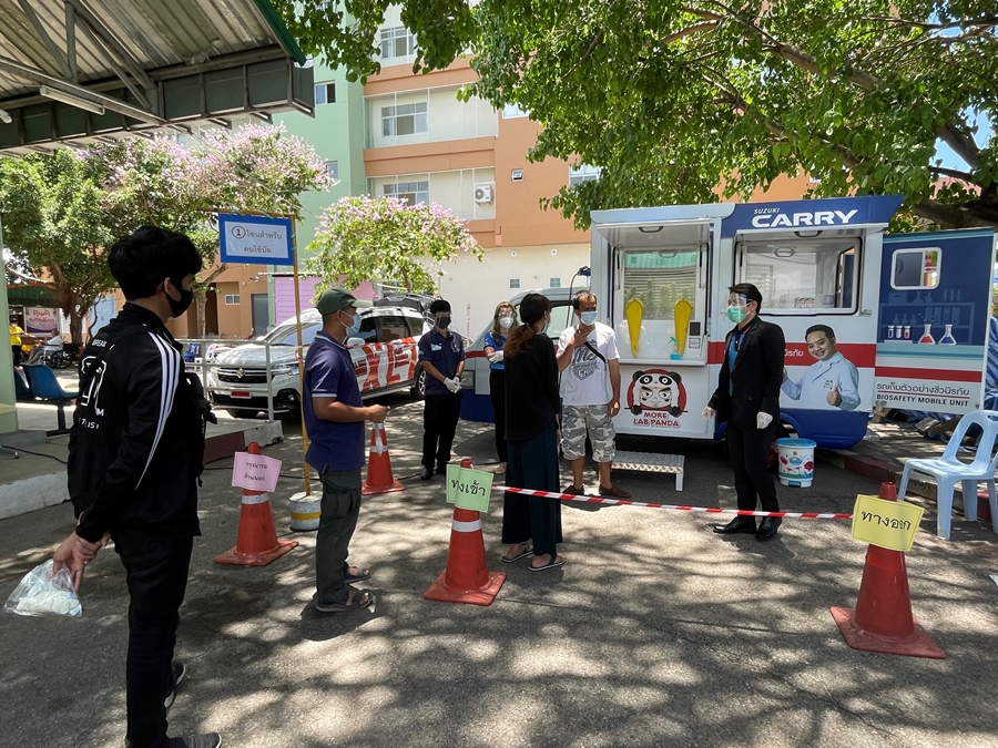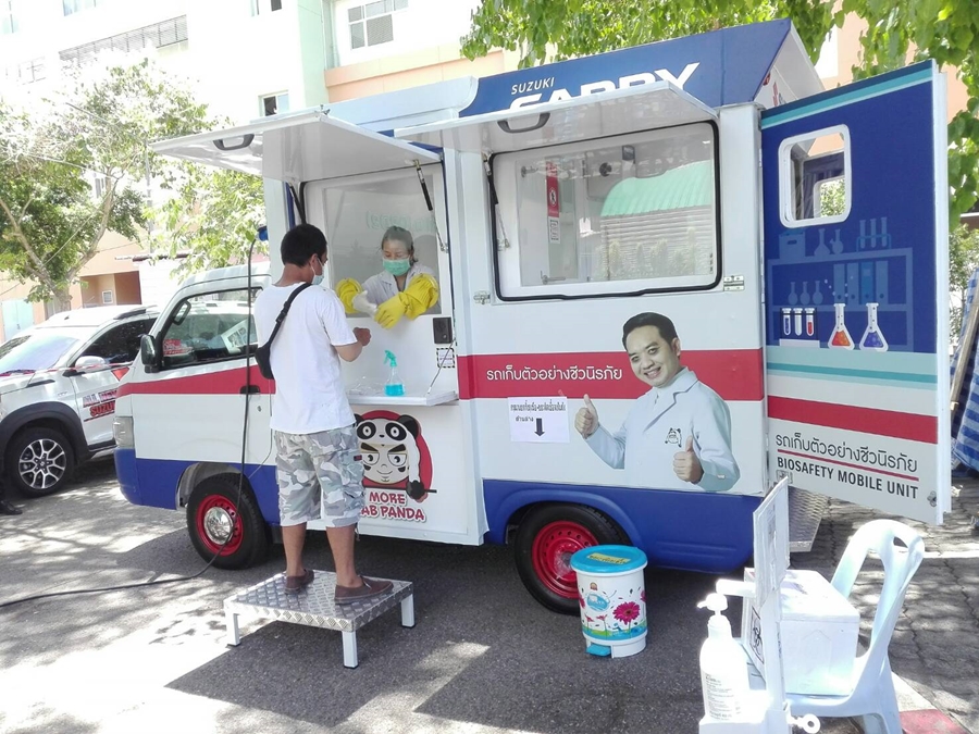 โดยล่าสุดทาง หมอแล็บแพนด้า ทนพ.ภาคภูมิ เดชหัสดิน ได้รับการติดต่อจากโรงพยาบาลพหลหลพยุหเสนา จังหวัดกาญจนบุรี ขอให้นำรถ SUZUKI CARRY Biosafety Mobile Unit ออกให้บริการประชาชนเพื่อตรวจหาเชื้อโควิด-19 ในเชิงรุกแบบเคลื่อนที่และไม่มีค่าใช้จ่าย เพื่อแบ่งเบาภาระพร้อมลดความแออัดของประชาชนที่เข้าไปใช้บริการในโรงพยาบาล ตั้งแต่วันที่ 19 -23 เมษายน 2564 ซึ่งผู้จำหน่ายรถยนต์ซูซูกิโดย บริษัท ซูซูกิกาญจนบุรี จำกัด ได้เข้าร่วมสนับสนุนการปฏิบัติงานของเจ้าหน้าที่ในครั้งนี้ตลอดระยะเวลาการให้บริการของหมอแล็บแพนด้า ในพื้นที่ดังกล่าว