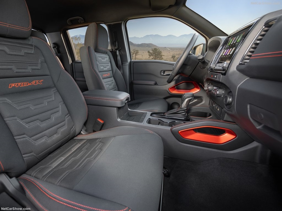 ภายในเน้นทรงเหลี่ยมสไตล์อเมริกันด้วยคอนโซลทรงหนา มาตรวัดแบบอนาล็อค พร้อมจอแสดงผลตรงกลางแบบ Advanced Driver Assist Display ขนาด 7.0 นิ้ว มาตรฐานที่ใหญ่ที่สุด เบาะแบบพิเศษปักโลโก้ PRO-4X / PRO-X (เฉพาะรุ่นนี้)