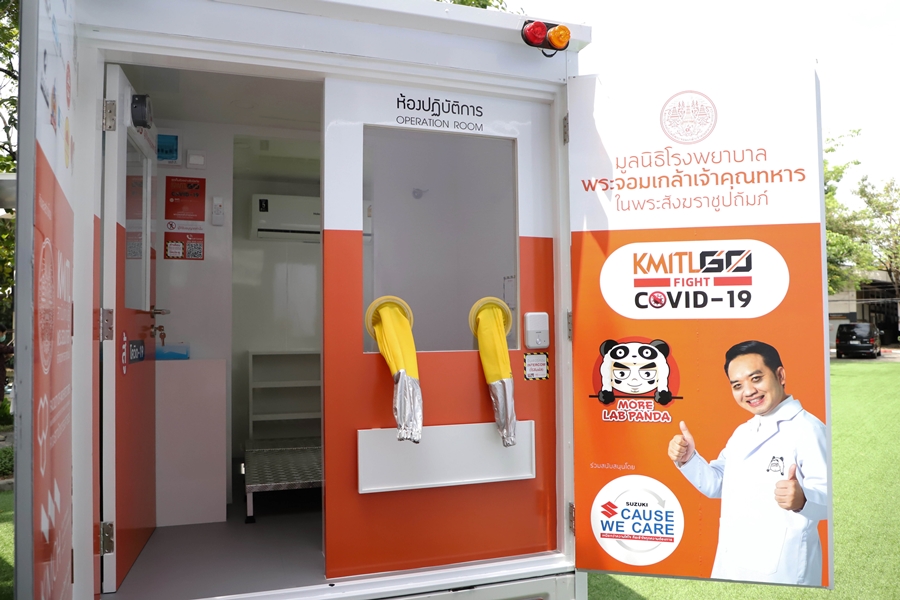 รถเก็บตัวอย่างชีวนิรภัย (SUZUKI CARRY Biosafety Mobile Unit) ถือเป็นความภาคภูมิใจของซูซูกิ ที่เกิดจากความร่วมมือของ ทนพ. ภาคภูมิ เดชหัสดิน (หมอแล็บแพนด้า), ศูนย์นวัตกรรม KMITL FIGHT FOR COVID-19 และศูนย์วิจัยและออกแบบงานสร้างสรรค์ (Research and Creative Design Center: RCDC) คณะสถาปัตยกรรม ศิลปะและการออกแบบ สถาบันเทคโนโลยีพระจอมเกล้าเจ้าคุณทหารลาดกระบัง ในการพัฒนารถเก็บตัวอย่างชีวินิรภัยแบบเคลื่อนที่ เพื่อที่จะเป็นส่วนหนึ่งของมาตรการการตรวจคัดกรองผู้เสี่ยงติดเชื้อโควิด-19 เชิงรุกในสถานการณ์การระบาดอย่างรุนแรงในขณะนี้ ซึ่งเป็นหนึ่งในแนวทางการควบคุมการแพร่กระจายเชื้อโควิด-19 ในกลุ่มพื้นที่เสี่ยงให้เร็วที่สุด โดยออกแบบพื้นที่กระบะบรรทุกของ SUZUKI CARRY ขนาดกว้าง 1,670 มิลลิเมตร ยาว 2,450 มิลลิเมตร และรับน้ำหนักได้ 945 กิโลกรัม ให้เป็น ตู้ชีวนิรภัย (Biosafety Unit) ที่เปรียบเสมือนห้องปฏิบัติการของเจ้าหน้าที่ฯ ซึ่งบรรจุได้ถึง 3 ห้อง สามารถ SWAB ได้ 3 คนในครั้งเดียว ต่อยอดจากรถเก็บตัวอย่างชีวนิรภัยต้นแบบคันแรกที่ SWAB ได้เพียงครั้งละ 1 คน ทำให้ตรวจคัดกรองได้มากกว่า 3,000 คนต่อวัน ภายในตู้ชีวนิรภัยสร้างสรรค์ผ่านหลักการ Human-Centered Design ช่วยลดความเสี่ยงต่อการติดเชื้อของบุคลากรทางการแพทย์ขณะปฏิบัติงาน ด้วยการติดตั้งระบบปรับและกรองอากาศด้วย HEPA Filter และระบบแรงดันบวก (Positive Pressure) ช่วยเสริมประสิทธิภาพให้แก่การปฏิบัติงานของเจ้าหน้าที่ทางการแพทย์