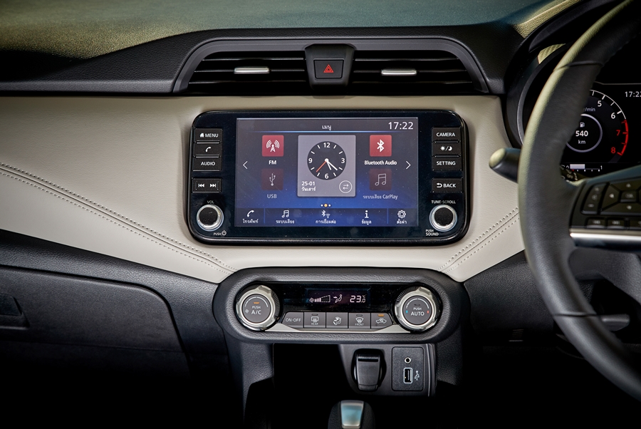 นอกจากนี้ในอัลเมร่าใหม่มาพร้อมระบบอินโฟเทนเมนต์ NissanConnect สามารถรองรับการเชื่อมต่อกับสมาร์ทโฟนผ่าน Apple CarPlay* เพื่อใช้งานแอปพลิเคชัน อาทิ ระบบนำทาง (Navigation system) หรือ แอปพลิเคชันฟังเพลงต่าง ๆ ผ่านจอระบบสัมผัสขนาด 8 นิ้ว พร้อมช่องต่ออุปกรณ์ USB/AUX และลำโพงคุณภาพดี 6 จุด เพิ่มความสุนทรีในทุกการเดินทาง