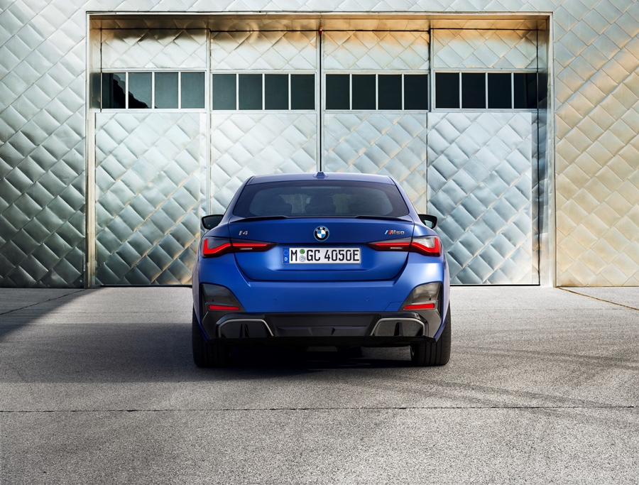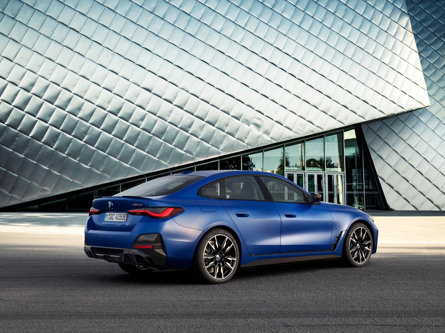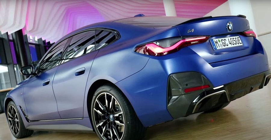 BMW i4 รถสปอร์ตสายพันธุ์ M Performance ที่แอบแตกแถวไปคบกับพลังมอเตอร์ไฟฟ้า 2 ชุดหน้าและหลัง พละกำลังรวม 536 แรงม้า (544 PS) และแรงบิด 586 ปอนด์-ฟุต หรือ 729.43 นิวตันเมตร มีมอเตอร์ไฟฟ้า 2 ตัว มอเตอร์หน้า 255 แรงม้า และมอเตอร์ด้านหลัง 308 แรงม้า พร้อมตัวรถที่ตกแต่งด้วยสีน้ำเงิน Frozen Portimao Blue สลับกับสีดำสนิทและคาร์บอนไฟเบอร์