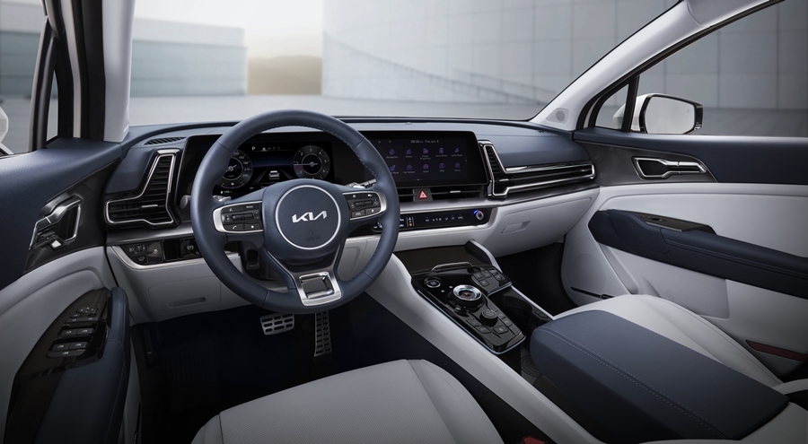ภายในห้องโดยสารเน้นพื้นที่ให้กับผู้ขับมากขึ้น ตำแหน่งการใช้สอยสะดวกในการเลือกกดและควบคุม ความโดดเด่นคือ การเชื่อมต่อเป็นจอโค้งเดียวกันระหว่างมาตรวัดกับส่วนแสดงผลกลางที่รวมระบบเอนเตอร์เทนเม้นต์และฟังก์ชันการใช้งานต่างๆ ไว้ด้วยกัน ทั้งยังออกแบบไอค่อนได้ดูทันสมัยเข้ากับโลโก้ใหม่ของ KIA ด้วย ช่องแอร์กลางออกแบบกลมกลืนไปกับคอนโซลหน้าที่ดูเหมือนงานชิ้นเดียวเชื่อมต่อไปยังช่องแอร์ผู้โดยสารข้าง