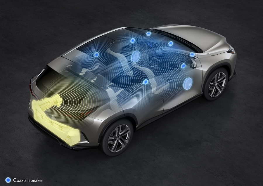 นอกจากนี้ เพื่อลดเสียงลมเมื่อขับขี่ด้วยความเร็วสูง จึงมีการปรับปรุงและพัฒนารูปร่างของยางขอบประตูและรางกระจกประตูหน้า เพื่อให้การปิดผนึกประตูมีประสิทธิภาพมากขึ้น สำหรับกระจกประตูหน้าได้มีการนำวัสดุป้องกันเสียงชนิดใหม่มาใช้*4 มีการใช้โครงสร้างแบบล็อกคู่ในฝากระโปรงหน้าเป็นครั้งแรกในรถยนต์ Lexus เพื่อลดการสั่นสะเทือนของฝากระโปรงที่เกิดจากสภาพอากาศแปรปรวน ส่งผลให้ได้ความเงียบที่ดียิ่งขึ้น รุ่นเทอร์โบชาร์จ 2.4 ลิตรมีคุณสมบัติ Active Noise Control/Engine Sound Enhancement ซึ่งช่วยปรับปรุงลักษณะเสียงของเครื่องยนต์เทอร์โบชาร์จสี่สูบ และในขณะเดียวกัน ก็ให้ประสบการณ์การขับขี่พร้อมด้วยเสียงเครื่องยนต์ที่น่าพึงพอใจตามแบบฉบับของ Lexus