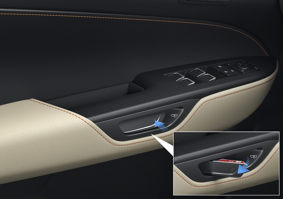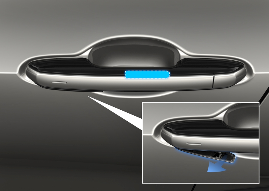 E-LATCH SYSTEM - การเปลี่ยนกลไกการล็อก/ปลดล็อกของประตูด้วยการควบคุมด้วยสวิตช์ไฟฟ้า ช่วยให้การทำงานของประตูเป็นไปอย่างราบรื่นและให้ความรู้สึกที่นิ่มนวล