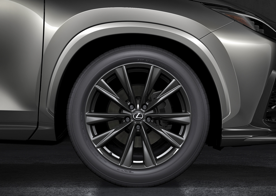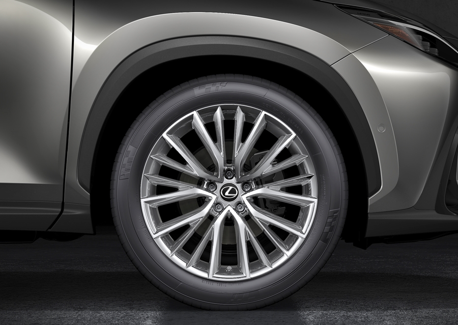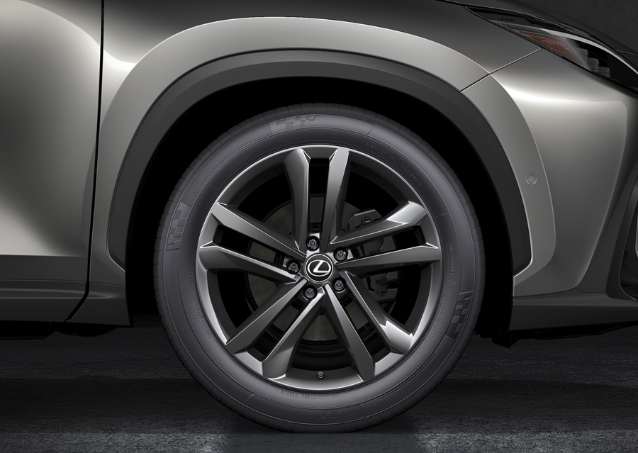 - ยางหน้าและหลังเพิ่มขนาดจาก 225/60R18 นิ้ว เป็น 235/50R20 นิ้ว ดอกยางของล้อหน้าและล้อหลังยังขยายขึ้นเพื่อเพิ่มภาพลักษณ์ไดนามิกของ NX นอกจากนี้ ด้วยการลดระดับจุดรองรับสะโพกของเบาะนั่งด้านหลังลง ทำให้ระยะห่างของศีรษะผู้โดยสารเพิ่มขึ้นและเพิ่มความสบายของผู้โดยสารในเบาะหลัง