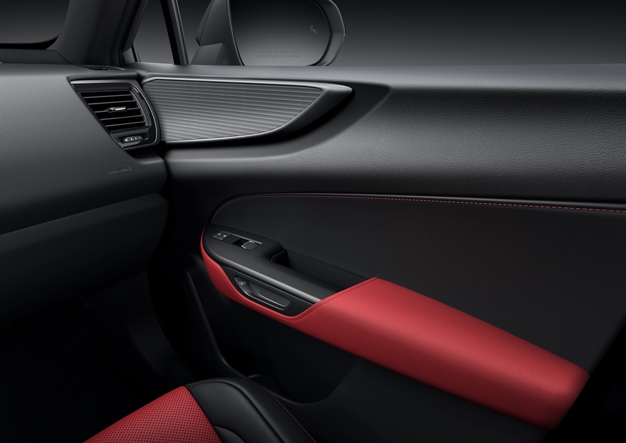 - การประดับตกแต่งจากแนวมาตรวัดไปจนถึงขอบประตูเป็นสีเข้มและมีความต่อเนื่องกับบริเวณที่นั่งคนขับเพื่อสร้างพื้นที่ให้คนขับขี่มีสมาธิในการขับขี่ "3D Cutting Black" คือรูปแบบเรขาคณิตที่พัฒนาขึ้นใหม่ที่จะค่อย ๆ ไล่ลวดลายให้หนาแน่นไปยังด้านหลังของตัวรถเพื่อช่วยเสริมความรู้สึกของการเคลื่อนไหวและความก้าวล้ำของเทคโนโลยีขั้นสูง