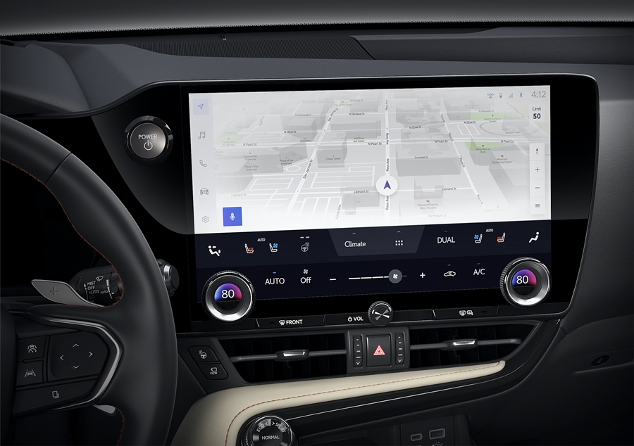 - ด้วยการใช้จอแสดงผลแบบสัมผัสขนาดใหญ่ จึงสามารถรวบรวมฟังก์ชันมากมายไว้บนจอแสดงผลทีมพัฒนาผลิตภัณฑ์ Lexus ให้ความสำคัญกับรายละเอียดของขนาด รูปร่าง การจัดวาง ข้อมูลที่จัดแสดง เพื่อการใช้งานที่เป็นธรรมชาติ โดยคำนึงถึงการใช้งานแต่ละฟังก์ชัน