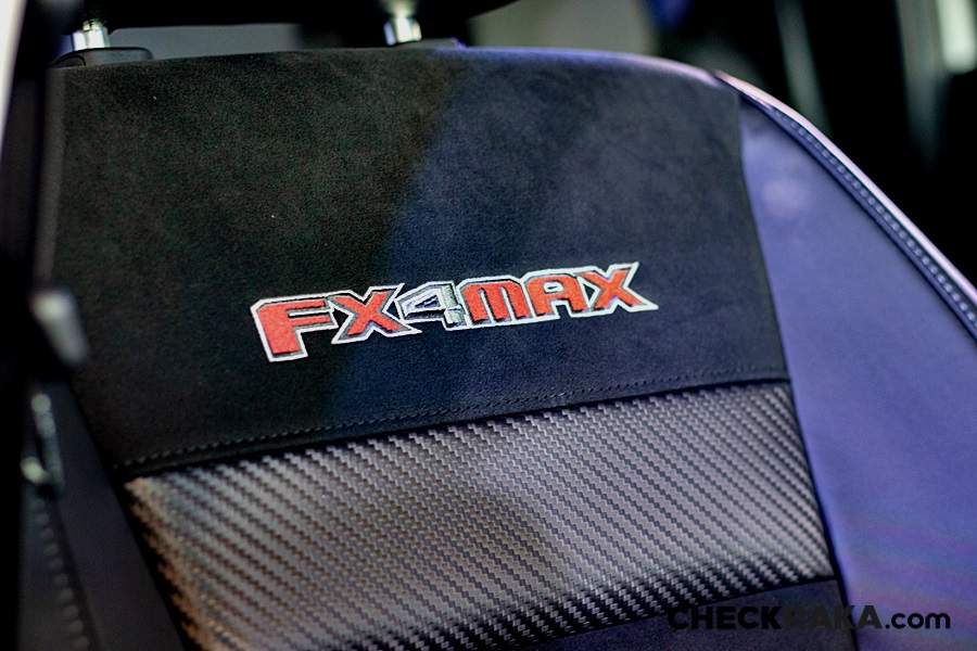 ภายในห้องโดยสารของฟอร์ด เรนเจอร์ FX4 Max ใหม่ มาพร้อมกับการออกแบบอันโดดเด่น จากบันไดข้างโลหะสีดำแบบออฟโรดพร้อมผิวกันลื่น จนถึงชุดผ้ายางปูพื้นภายในห้องโดยสารที่ออกแบบมาเพื่อรองรับการใช้งานแบบออฟโรดโดยเฉพาะ เบาะนั่งพิเศษเฉพาะฟอร์ด เรนเจอร์ FX4 Max ใหม่ ใช้วัสดุหนังแท้ หนัง Alcantara และหนังสังเคราะห์ใหม่ที่แตกต่างจากรุ่นอื่นๆ รวมถึงการปักสัญลักษณ์ FX4 Max ที่เป็นเอกลักษณ์บนเบาะคู่หน้า แป้นเหยียบคันเร่งสไตล์สปอร์ตแบบเดียวกับฟอร์ด เรนเจอร์ แร็พเตอร์ ไปจนถึงพวงมาลัยหุ้มด้วยหนังสีดำ สีเดียวกับลวดลายตกแต่งแผงคอนโซลและขอบประตู ยกระดับความโดดเด่นและความรู้สึกที่โฉบเฉี่ยวดุดัน