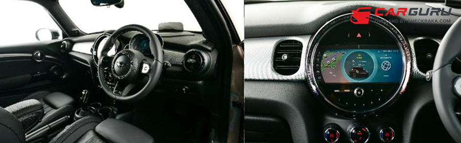 การออกแบบภายในห้องโดยสารของมินิ แฮทช์ 3 ประตู และมินิ คอนเวิร์ตทิเบิล มีความหรูหราทันสมัยยิ่งขึ้น ตกแต่งด้วยวัสดุคุณภาพสูง พร้อมแนวตะเข็บในสีเดียวกับลายเบาะแถบสีตกแต่งภายในห้องโดยสาร มาในสีเดียวกับเบาะนั่งเป็นมาตรฐาน และยังลดการใช้ชิ้นส่วนโครเมียมลงอย่างมาก ช่องแอร์ทรงกลมทั้งสองข้างมาในกรอบสีดำ ขณะที่ช่องแอร์ตรงกลางรถได้รับการออกแบบใหม่ให้กลมกลืนกับพื้นผิวภายใน ซึ่งมาในชิ้นส่วนเดียวกันตลอดแนวจากคอนโซลไปจนถึงด้านหน้าคนขับแผงคอนโซลกลางมาในลุคพรีเมียมยิ่งขึ้น มาพร้อมจอระบบสัมผัสขนาด 8.8 นิ้ว ปุ่มรายการโปรดระบบสัมผัส พื้นผิวสีดำเงา Piano Black ปุ่มควบคุมระบบเสียงและปุ่มไฟฉุกเฉิน รวมเป็นหนึ่งเดียวในแผงควบคุมทรงกลม ซึ่งล้อมรอบด้วยวงแหวนไฟ LED รับกับไฟสร้างบรรยากาศสลักลวดลายด้วยเลเซอร์ มอบลุคล้ำสมัยยิ่งขึ้น แป้นเปลี่ยนเกียร์มาในสีดำล้วน มาพร้อมระบบนำทาง พวงมาลัยหนังแท้สไตล์สปอร์ต ห้องโดยสารเพียบพร้อมด้วยเทคโนโลยีล้ำสมัยสำหรับไลฟ์สไตล์ยุคดิจิทัล