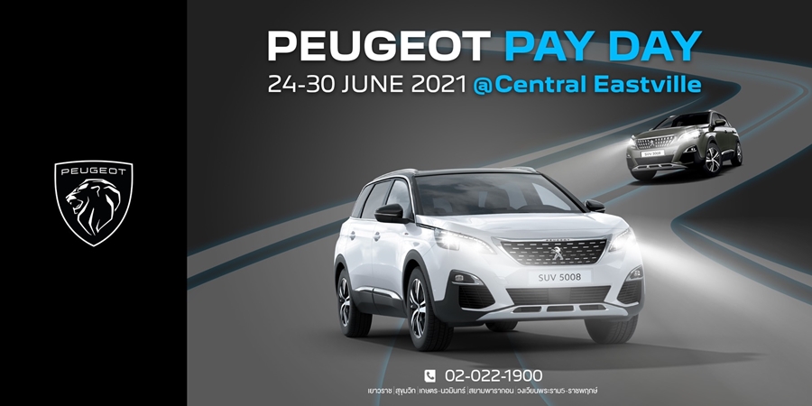 พบกับกิจกรรมพิเศษ PAYDAY ของ เปอโยต์ ไลอ้อน ออโตโมบิล ได้อย่างต่อเนื่อง ในวันที่ 4-10 กรกฎาคม ที่ เดอะคริสตัล เอสบี ราชพฤกษ์ และ 15-21 กรกฎาคม ที่ ศูนย์การค้าเมกาบางนา ชั้น 1 บริเวณหน้าร้านมินิโซ