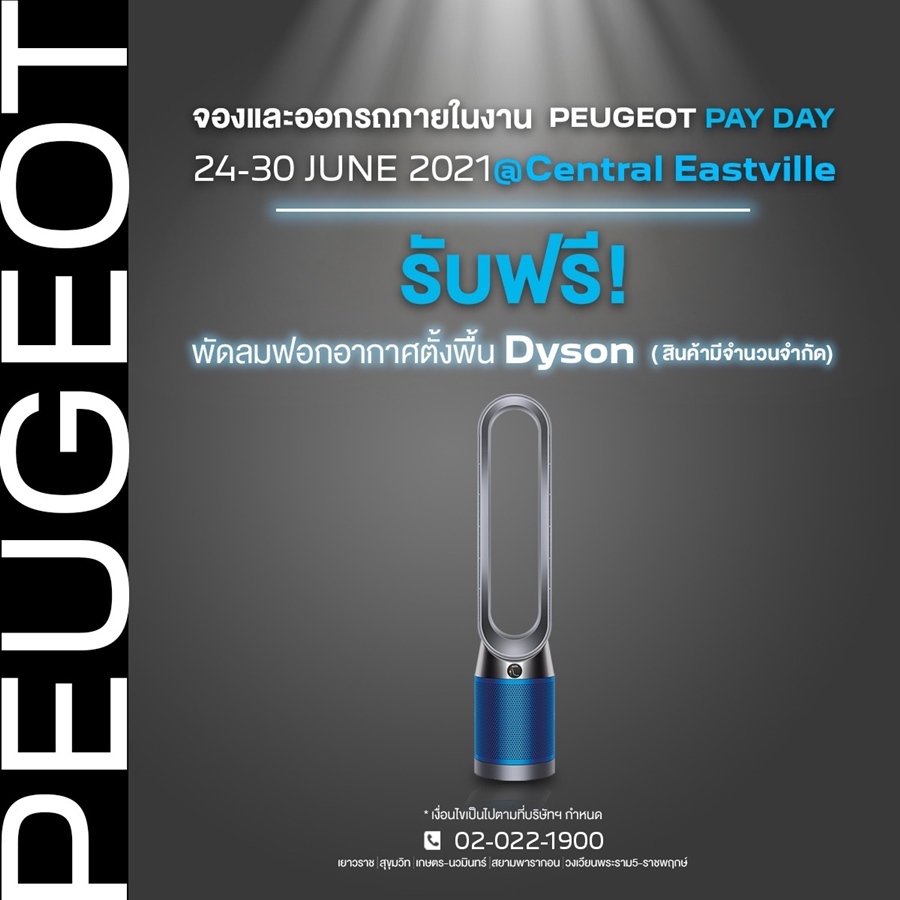 เปอโยต์ กระหน่ำแคมเปญสุดพิเศษ "PAYDAY" แจกฟรี! พัดลมฟอกอากาศ DYSON