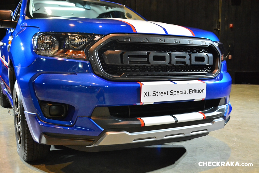 ฟอร์ด เรนเจอร์ เอ็กซ์แอล สตรีท สเปเชี่ยล เอดิชั่น โดดเด่นด้วยกระจังหน้าตัวอักษร FORD แบบเดียวกับรถแข่งของทีมฟอร์ด ไทยแลนด์ เรสซิ่ง และรถกระบะออฟโรดสมรรถนะสูง ฟอร์ด เรนเจอร์ แร็พเตอร์ ติดตั้งมาจากโรงงาน เพิ่มความเท่ให้ตัวรถด้วยชุดแต่งรอบคัน ทั้งสเกิร์ตด้านหน้า ด้านข้าง และสปอยเลอร์ด้านหลัง รวมถึงล้ออัลลอยขนาด 16 นิ้ว สีดำ พร้อมสติ๊กเกอร์ตกแต่งด้านข้างลายใหม่ และยังคงดีไซน์ของสติ๊กเกอร์รอบคันคาดตั้งแต่กันชนหน้าจนถึงท้ายกระบะ อันเป็นเอกลักษณ์ของรถแข่งทีมฟอร์ด ไทยแลนด์ เรสซิ่ง