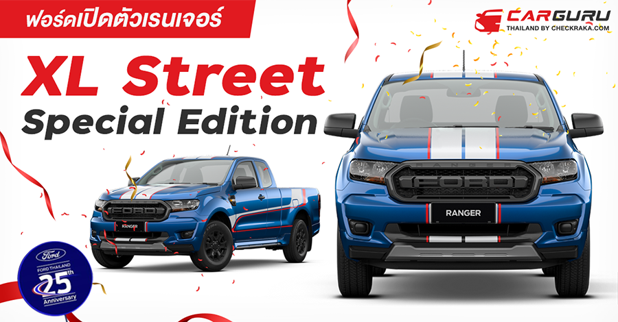 Ford Ranger XL Street Special Edition 2021 ครบรอบ 25 ปี (ฟอร์ด เรนเจอร์ เอ็กซ์แอล สตรีท สเปเชียล เอดิชั่น) ดีไซน์สะดุดตาด้วยชุดแต่งรอบคัน สติ๊กเกอร์ด้านข้างลายใหม่ และยังคงเอกลักษณ์ของรถแข่งทีมฟอร์ด ไทยแลนด์ เรสซิ่ง ด้วยสติ๊กเกอร์คาดตั้งแต่กันชนหน้าจนถึงท้ายกระบะ และเนื่องในโอกาสฉลองครบรอบ 25 ปี ฟอร์ด ประเทศไทย เพราะมีจำนวนจำกัดเพียง 300 คัน เท่านั้นในราคาสุดพิเศษ เพียง 682,000 บาท จะมีอะไรโดดเด่นกว่า