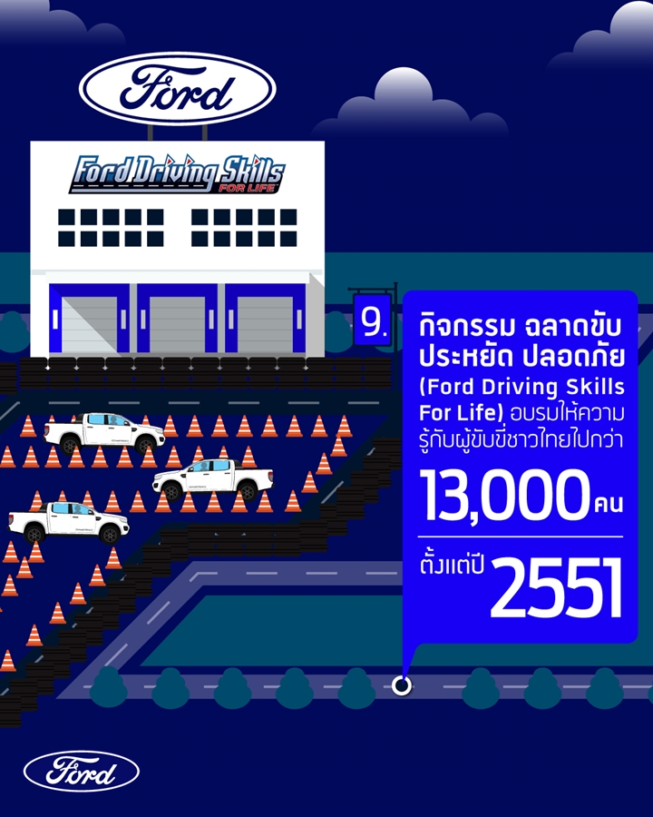 ตั้งแต่ปี พ.ศ. 2551 ฟอร์ดได้จัดทำโครงการ Ford Driving Skills for Life หรือ ฉลาดขับ ประหยัด ปลอดภัย ซึ่งเป็นโครงการเพื่อสังคมของฟอร์ดทั่วโลกที่ให้ความรู้ด้านการขับขี่ปลอดภัย สำหรับประเทศไทย ฟอร์ดได้จัดอบรมให้กับผู้สนใจโดยไม่มีค่าใช้จ่ายรวมแล้วกว่า 13,000 ราย ทั่วประเทศ