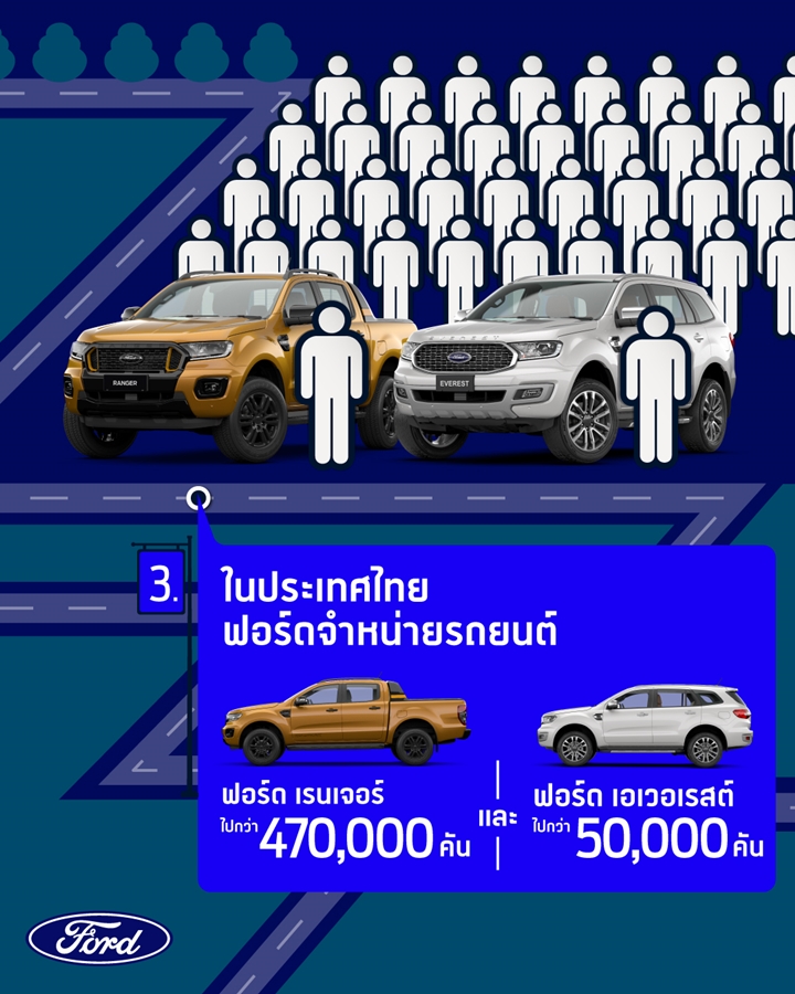 ฟอร์ด เอเวอเรสต์ ในประเทศไทย รถทั้งสองรุ่น ได้ครองตำแหน่งผลิตภัณฑ์เรือธงของฟอร์ดสำหรับทั้งการจำหน่ายในประเทศและส่งออกไปยังอีกกว่า 100 ประเทศทั่วโลก รถฟอร์ด เรนเจอร์ และฟอร์ด เอเวอเรสต์ ได้รับการพัฒนามาอย่างต่อเนื่อง ด้วยสมรรถนะอันเหนือชั้น การใช้งานที่หลากหลาย และรูปลักษณ์ที่แตกต่าง อัดแน่นด้วยอุปกรณ์และเทคโนโลยีล้ำสมัยที่ไม่เคยมีมาก่อนในแต่ละเซ็กเม้นต์