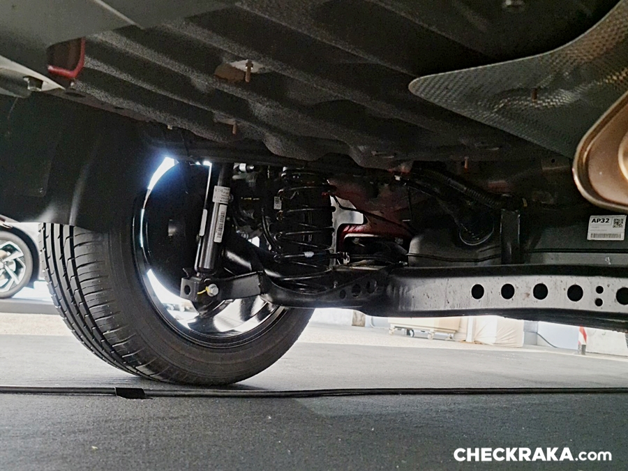ระบบพวงมาลัย Rack and Pinion ควบคุมด้วยไฟฟ้า (EPS) สามารถเลือกปรับน้ำหนักได้ 3 ระดับ ระบบช่วงล่างหน้า MacPherson Strut พร้อมเหล็กกันโคลง ระบบช่วงล่างหลัง Torsion Beam พร้อมระบบเบรกมือไฟฟ้า EPB (Electronic Parking Brake) และ Auto hold